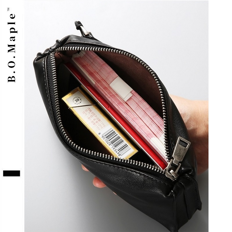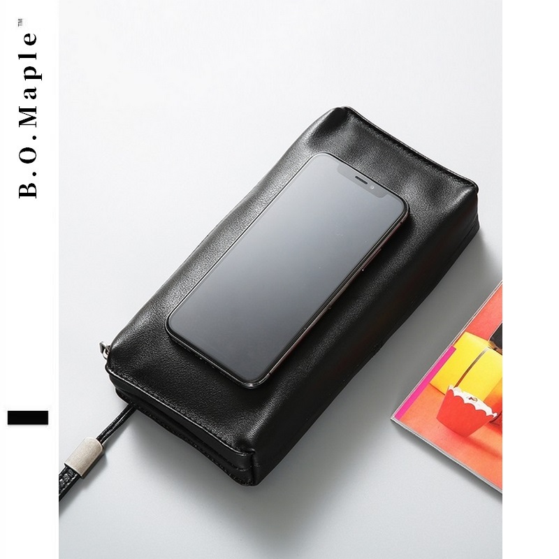 BOMaple Upscale Men's Hands With Bag Genuine Leather Handbag Baotou Beef Leather Business Casual Mobile Phone Bag with wallet