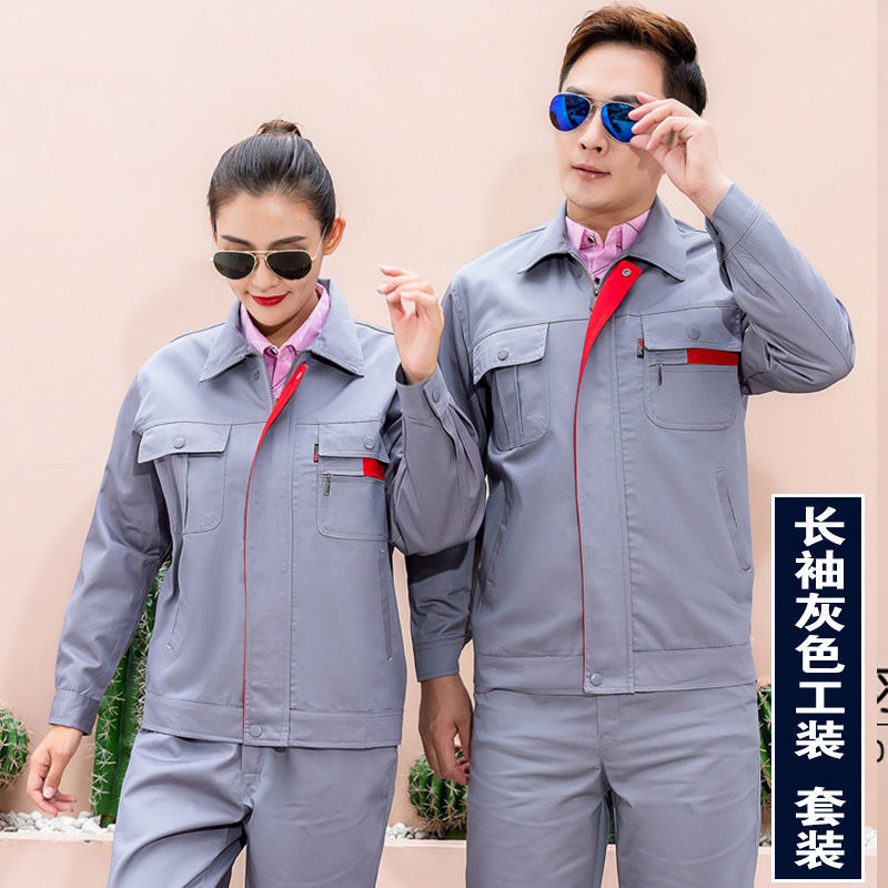 Customize the printed word spring and autumn work clothes suit men's long sleeve abrasion resistant and dirty workshop workers' steam repair work and labor