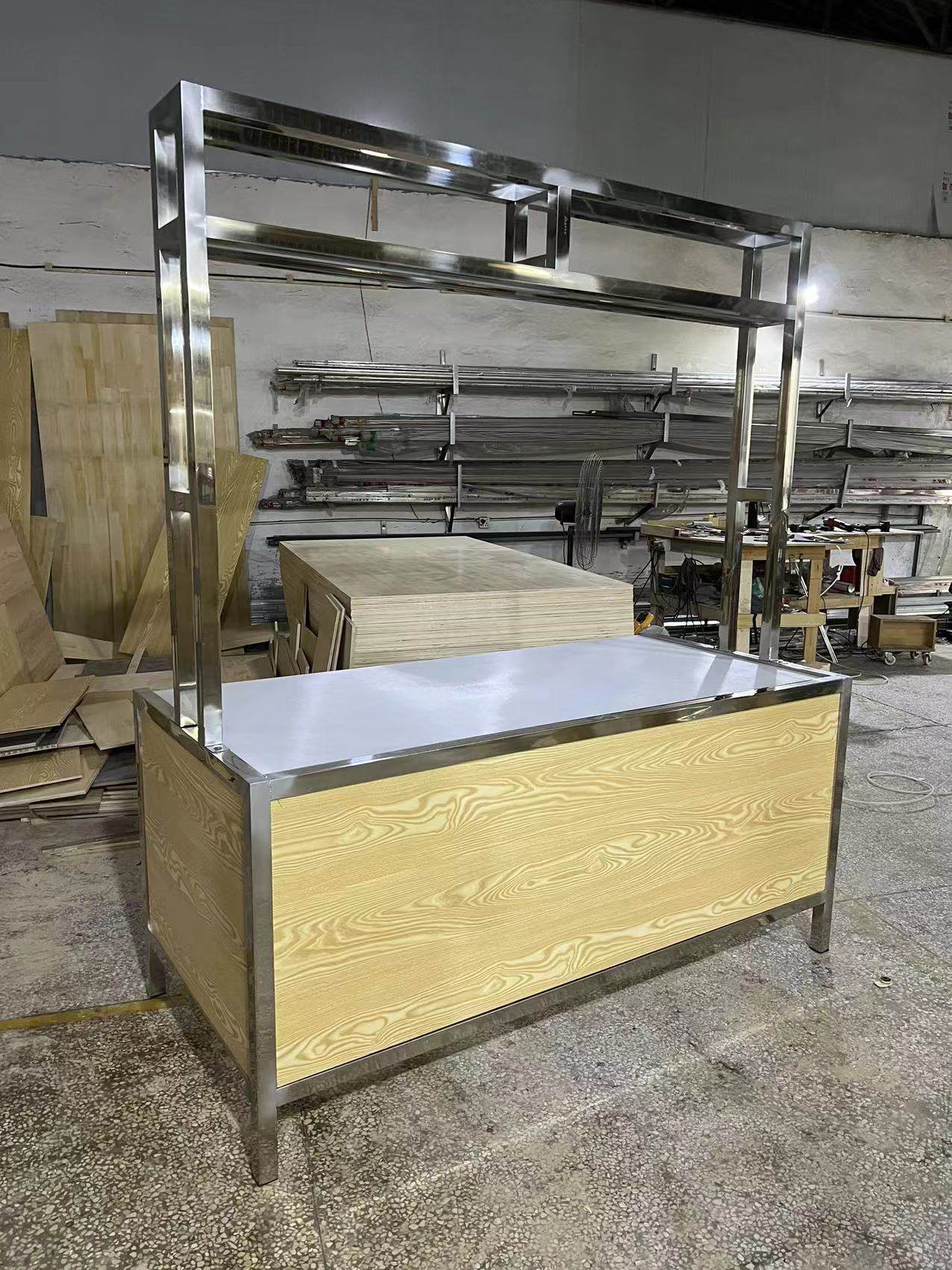 Aunt Qian's pork table cut meat chop bone table fresh supermarket stainless steel pork segmentation table vegetable shelf display rack