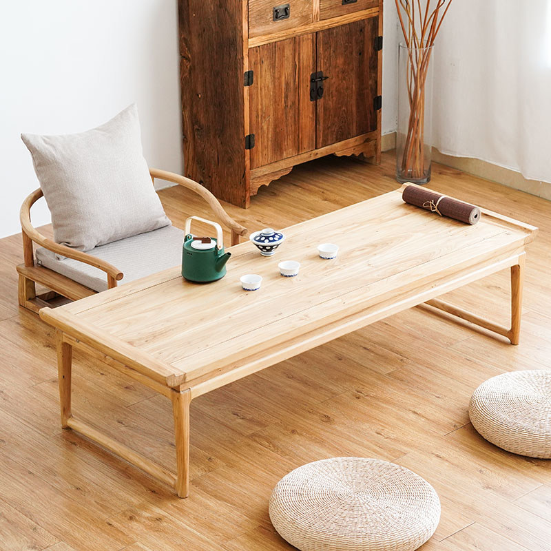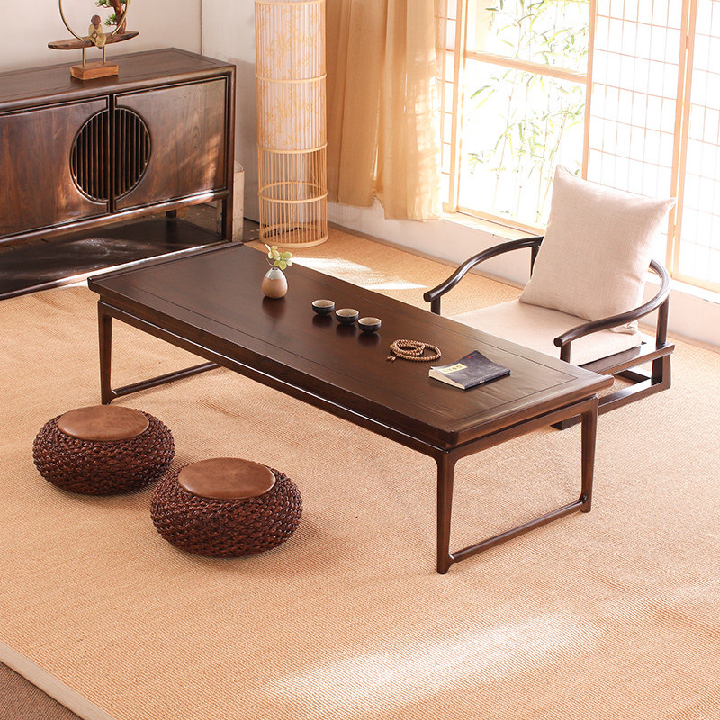 New Chinese style tatami tea table balcony solid wood tea table and chairs home Zen kung fu tea table low table low table platform