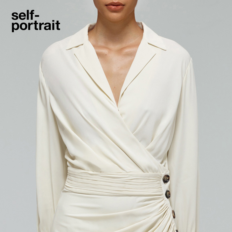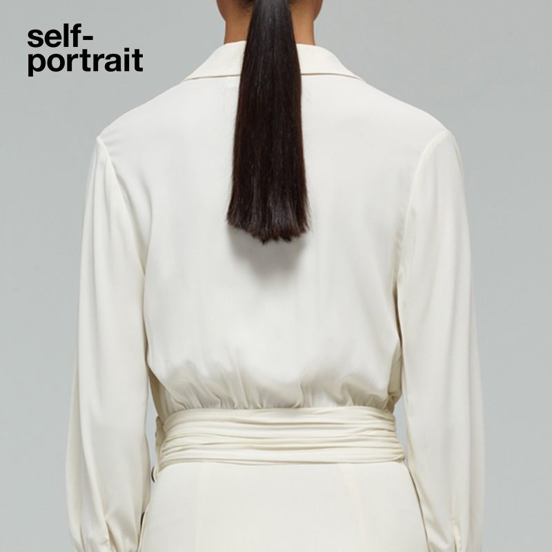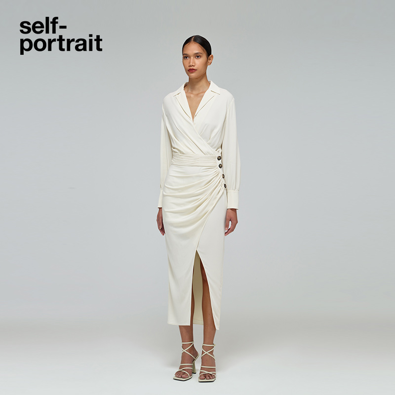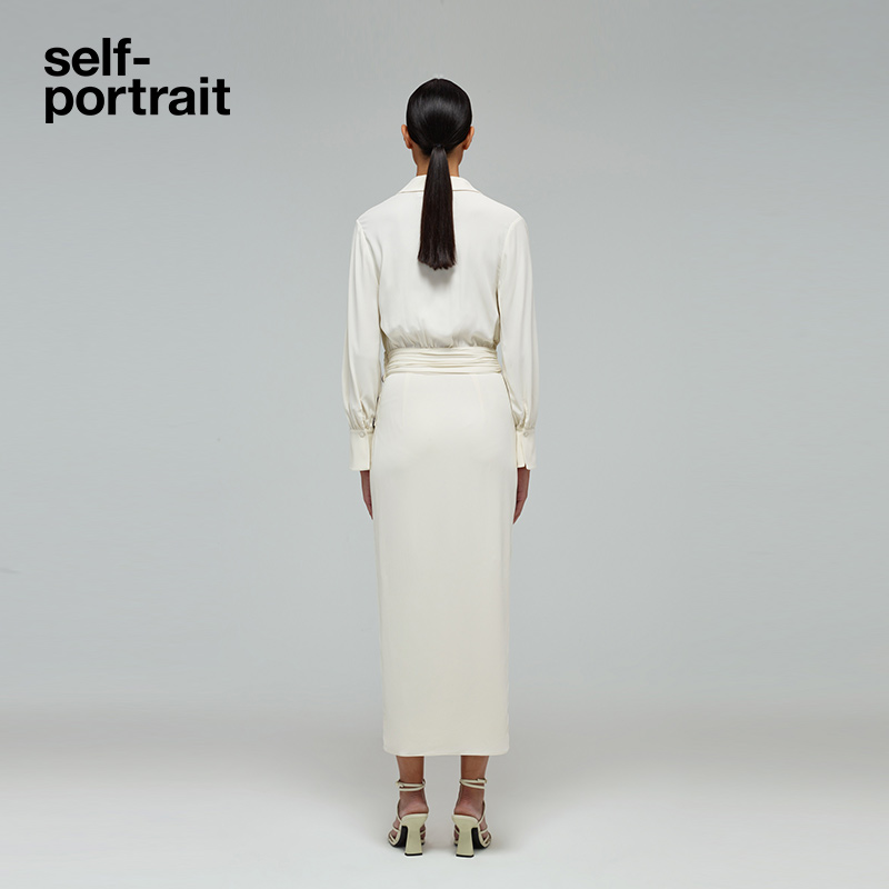 self-portrait 2022 spring and summer ivory white slim waist slit shirt one step skirt dress long skirt