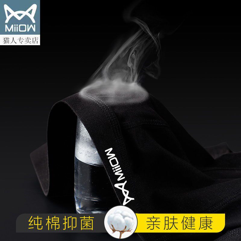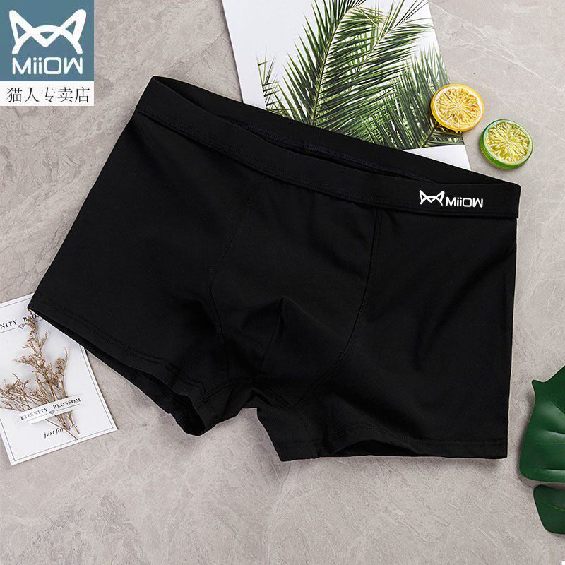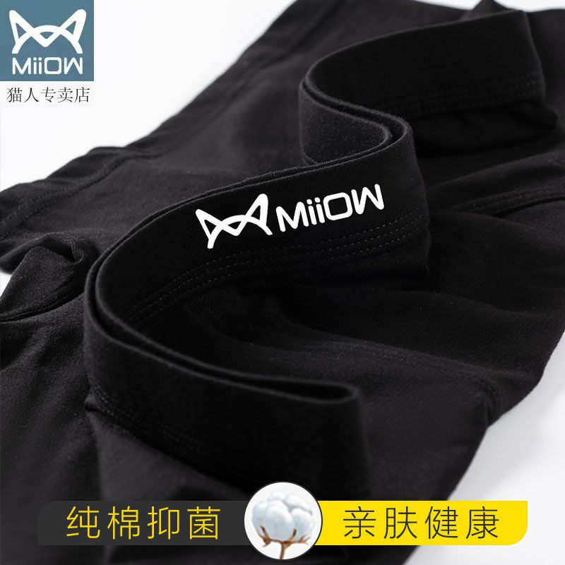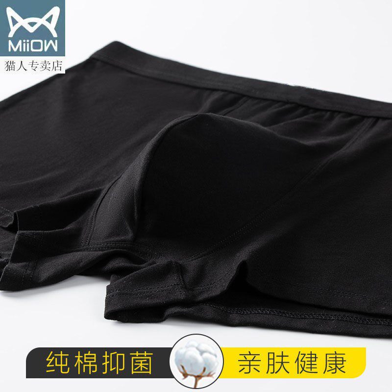 Cat black underpants male cotton four-corner large-yard mid-waist pants Young adult dark pants autumn and winter black