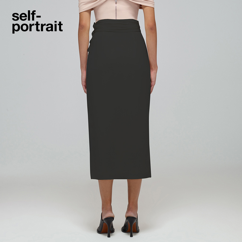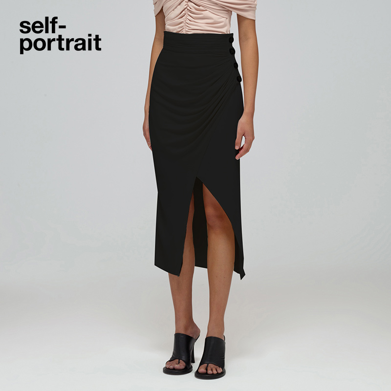 self-portrait 2022 spring and summer classic black big slit design light luxury high-end bottoms half skirt midi skirt