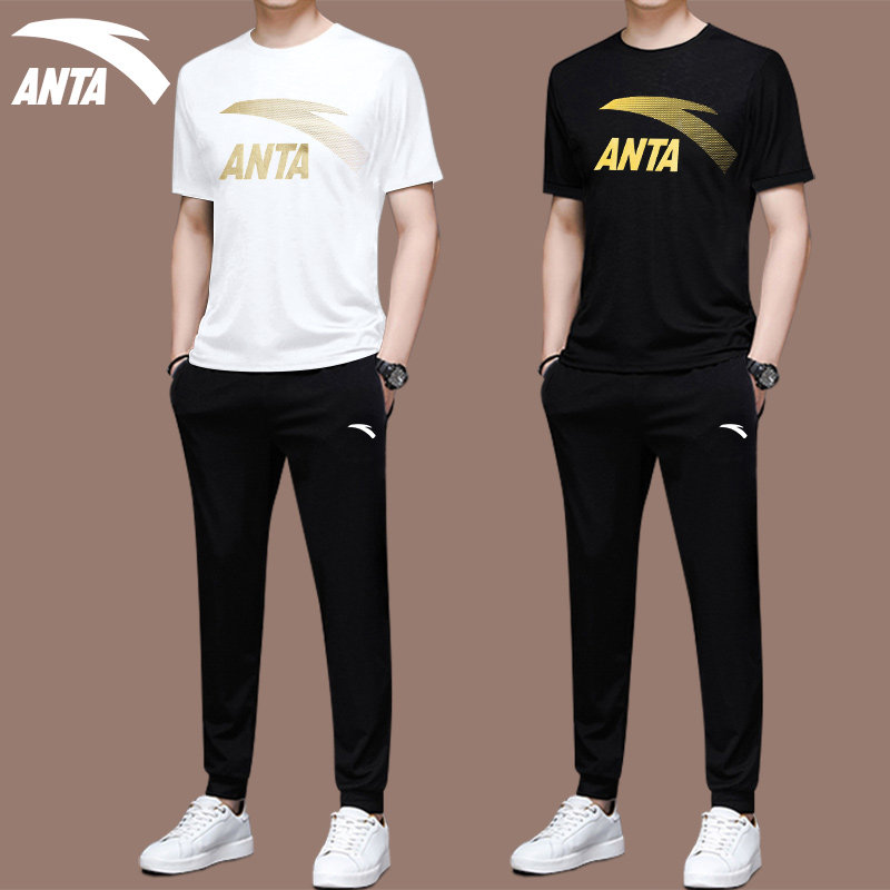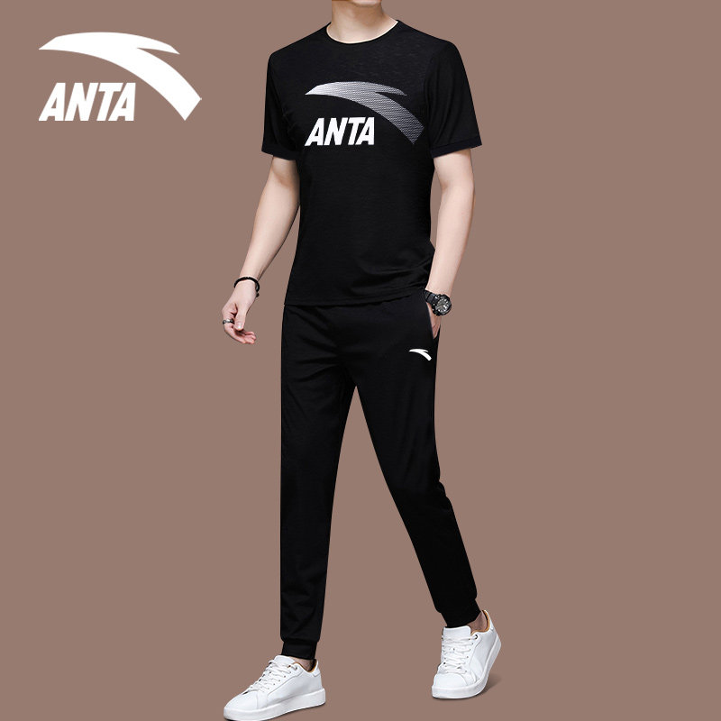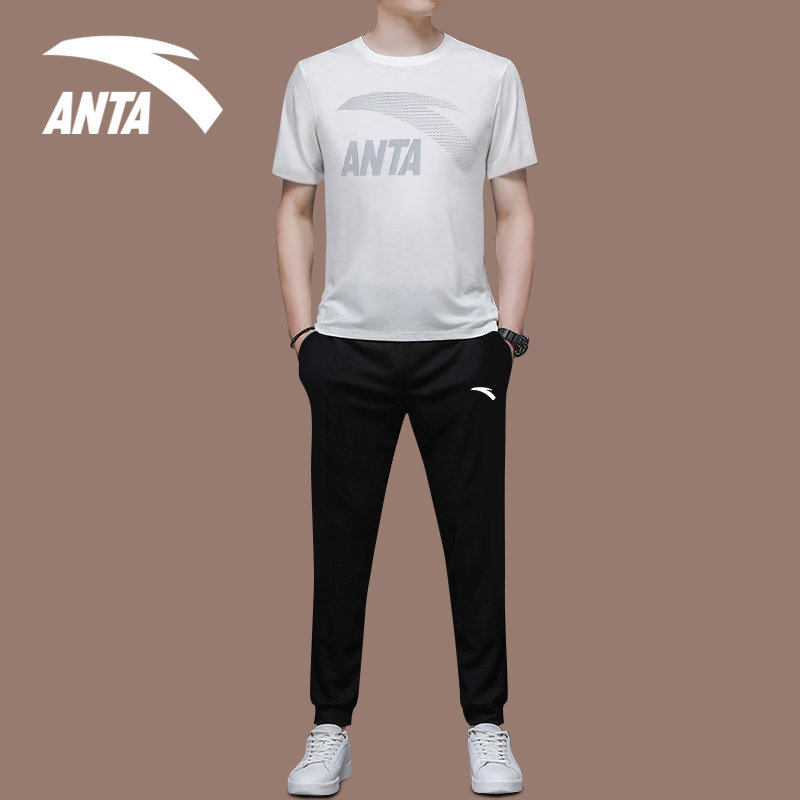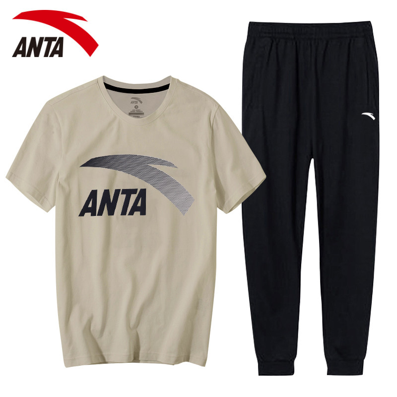 Anta Sports Suit Men's Summer New Official Web Flagship Short Sleeve T-Shirt Long Pants Loose Casual Sportswear Men