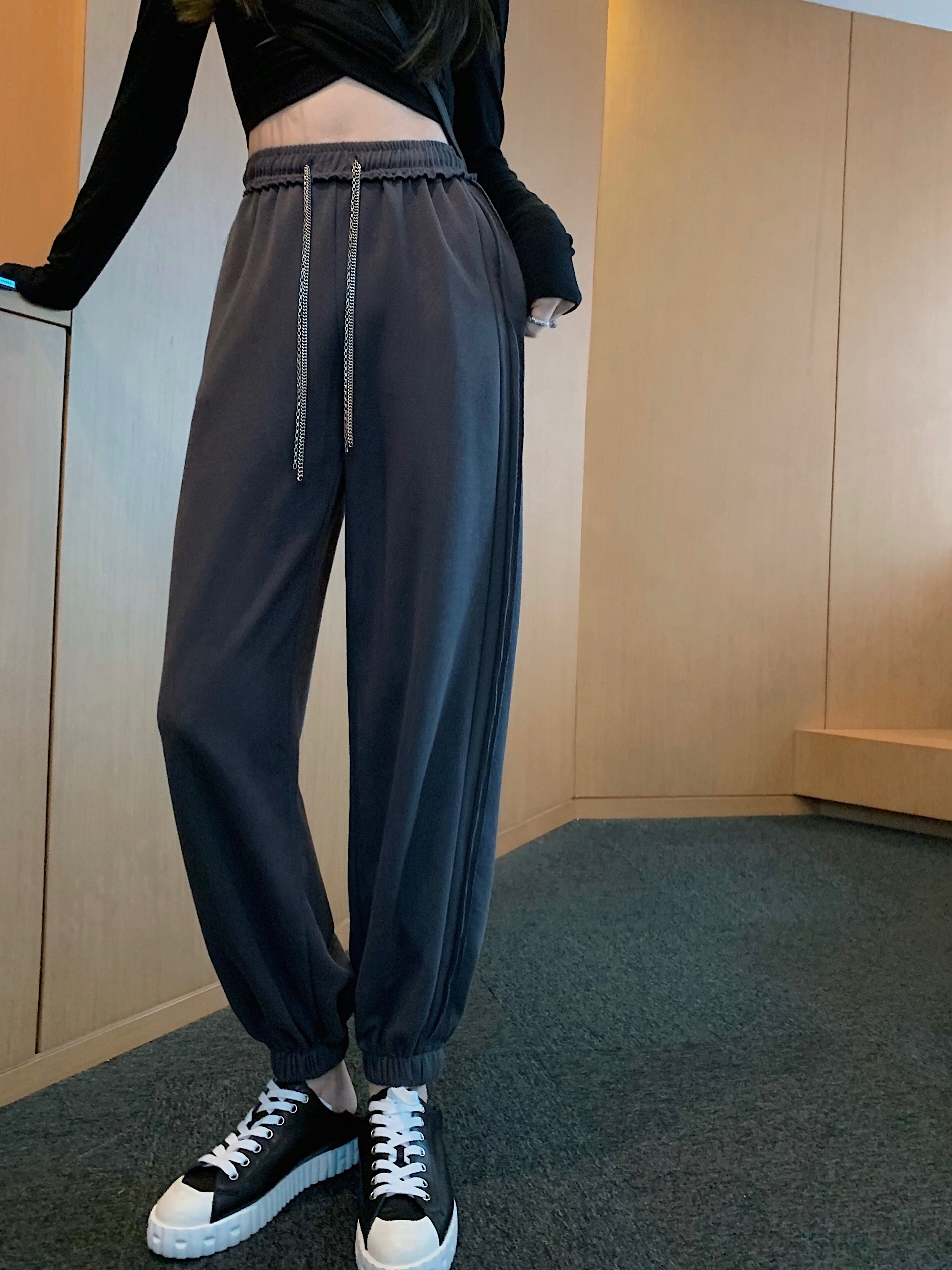 High Waist Black Grey Sweatpants Woman Spring Autumn New Straight Drum Sporting Pants Little Subbeam Leggings Pants Loose Casual Pants Tide