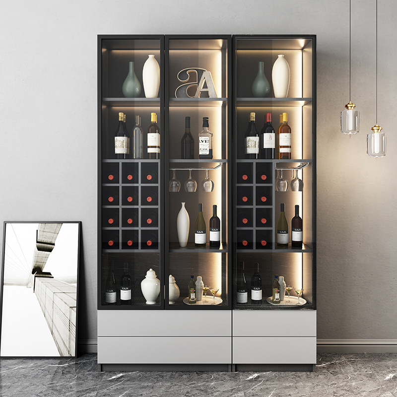 Modern minimalist glass door wine cabinet living-room containing cabinet leaning against wall light lavish display case small with lamp wine rack containing cabinet