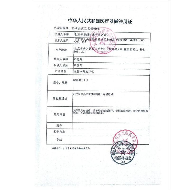 The Beijing machinery is approved for 20192090168