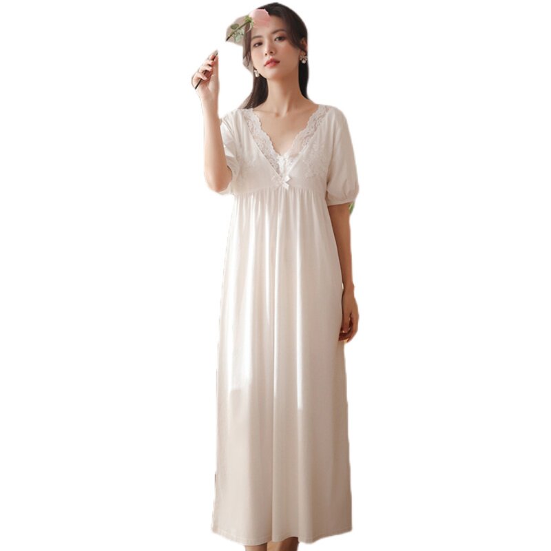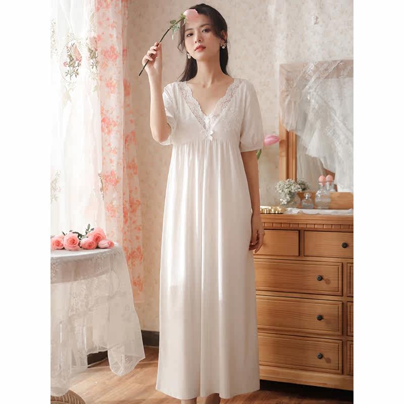 Palace Wind White Sleeping Dress Woman Summer Sexy Lace Pure Desire Brief Pure Color Sweet pyjamas 2022 New