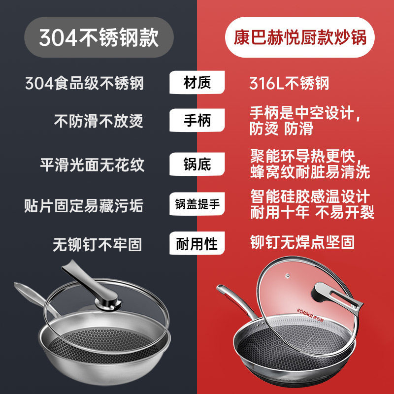 Conbach Hyatt Stainless Steel Frying Pan Beehive Sauté Home not Complacent Electric Official Flagship Store Magnetic Furnace Gas Stove