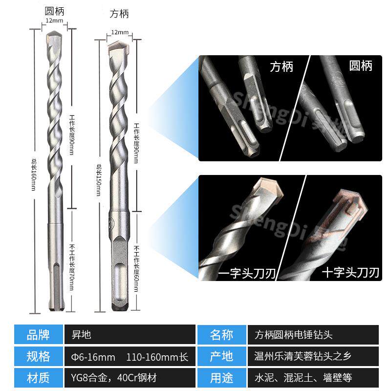 Non-standard impact drill bit square handle round handle concrete electric hammer drill turn 4 5 7 9 11 12 5 13 15 16 5mm