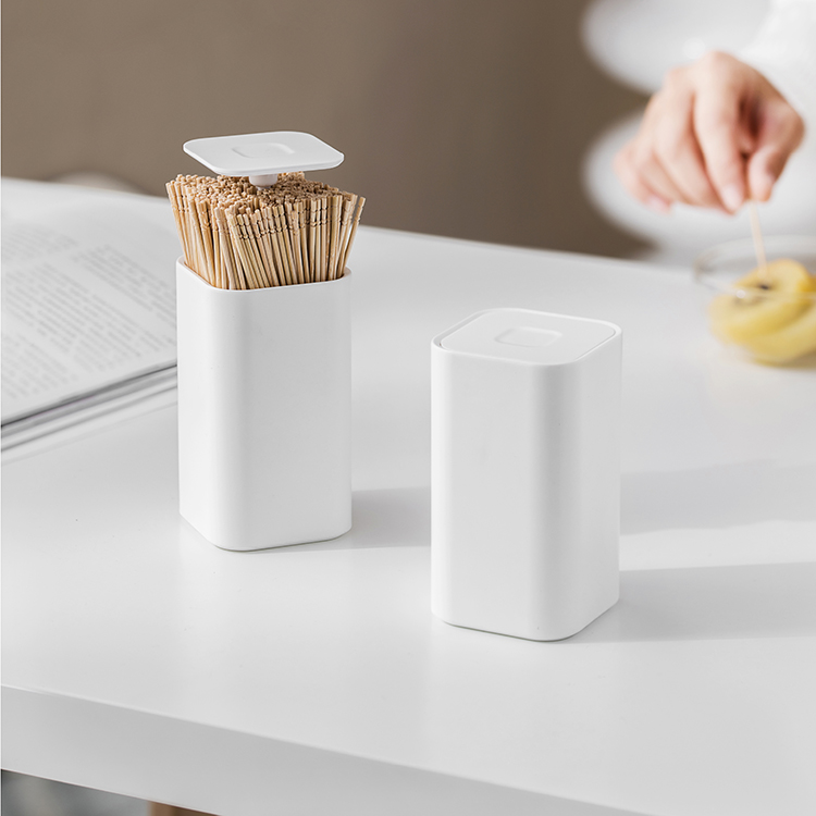 Minimalist white square creative press-type automatic cotton stick box toothpick containing box Home dining room finishing floss box