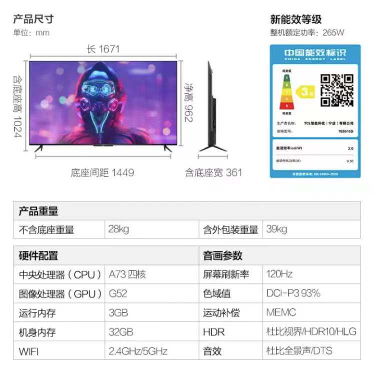 Thunderbird S515D PRO 75-inch 4K HD 120HZ voice intelligent online game smart TV 65 55