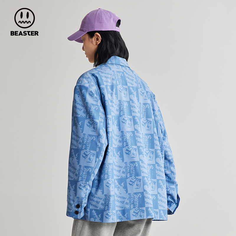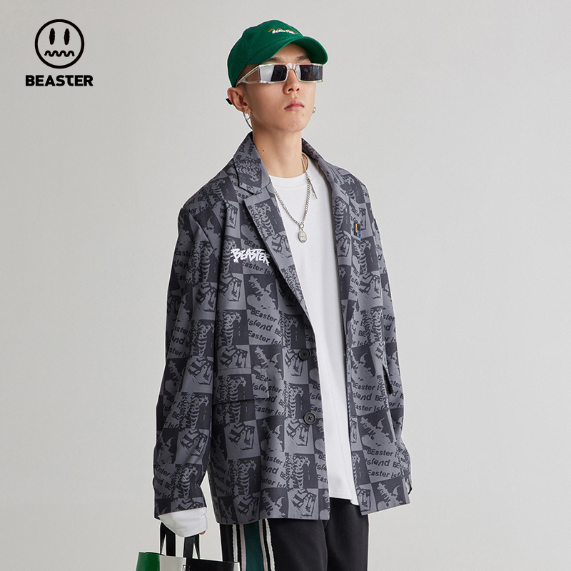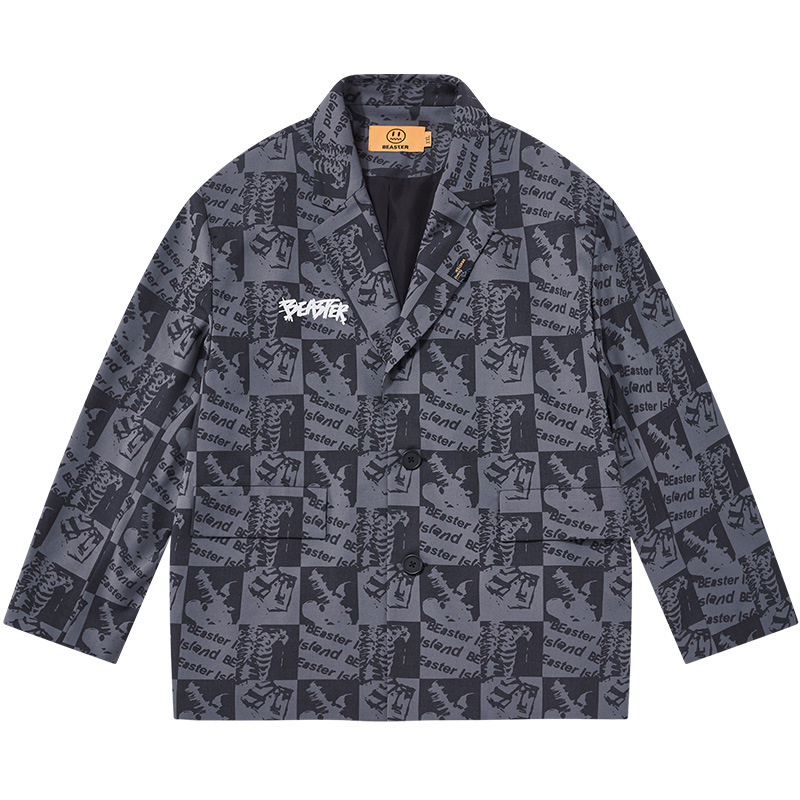 BEASTER Little Devil Ghost Face Full Print Loose Tide Card West Suit Fashion Casual Jacket Man