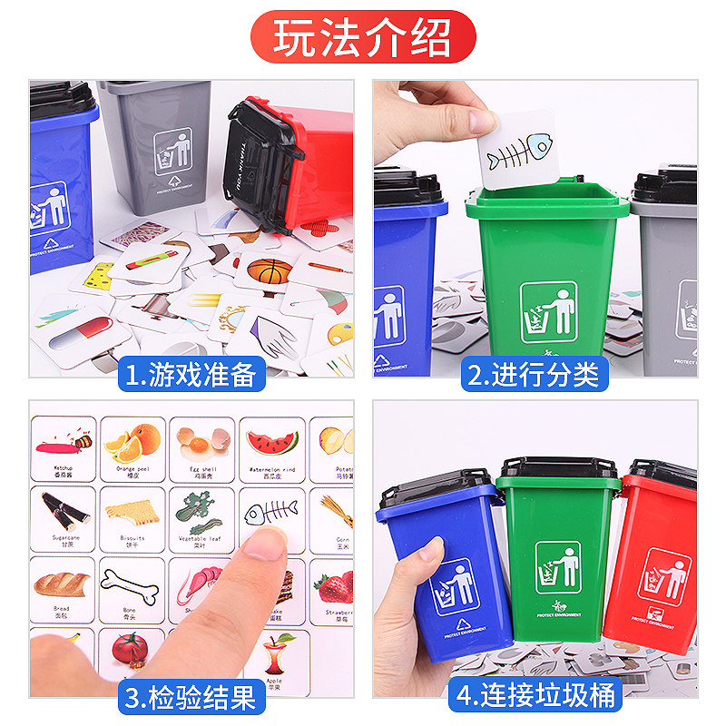 Garbage classification game props early education puzzle children kindergarten student card mini desktop trash can toy