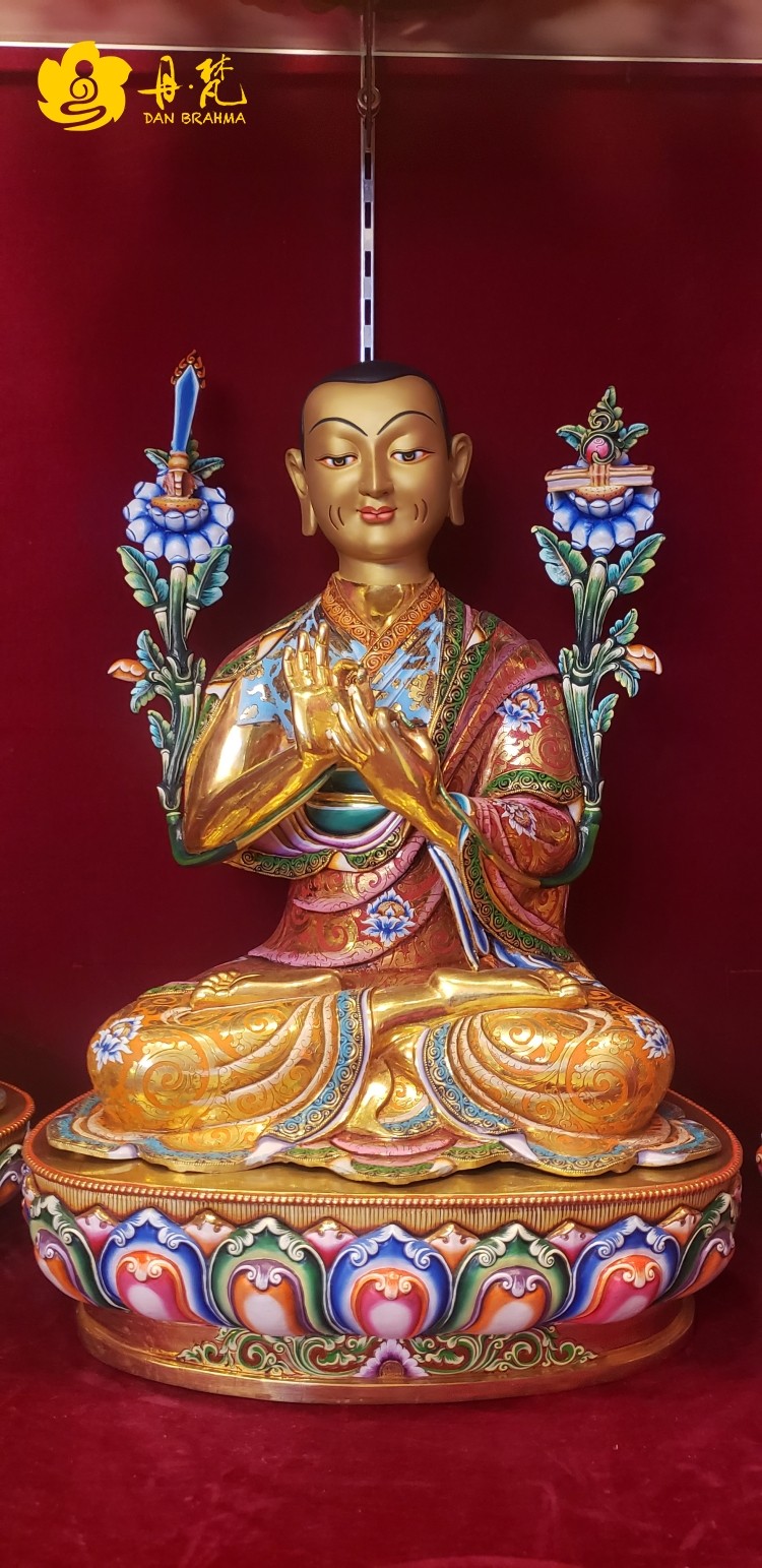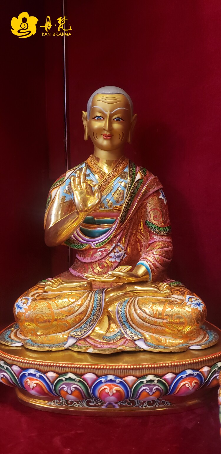 Nepal's Sakya Cage Cage Gold Painted Kaba Master Apprentice 3-Zun Pavilion Tibetan Class Works High 53cm44cm