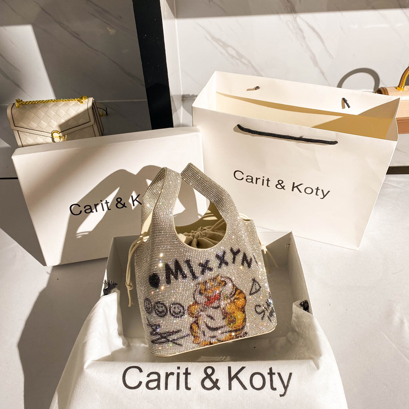 Carit Koty small crowdsourced light and luxurious water drill bag 2022 new wave advanced senses bucket bag women's food basket hand