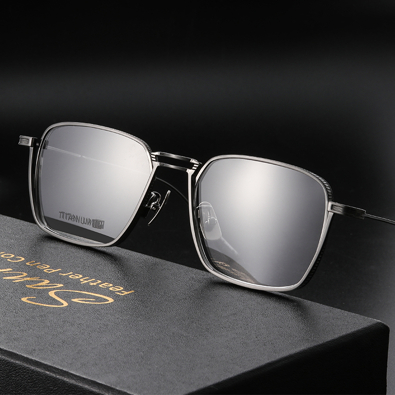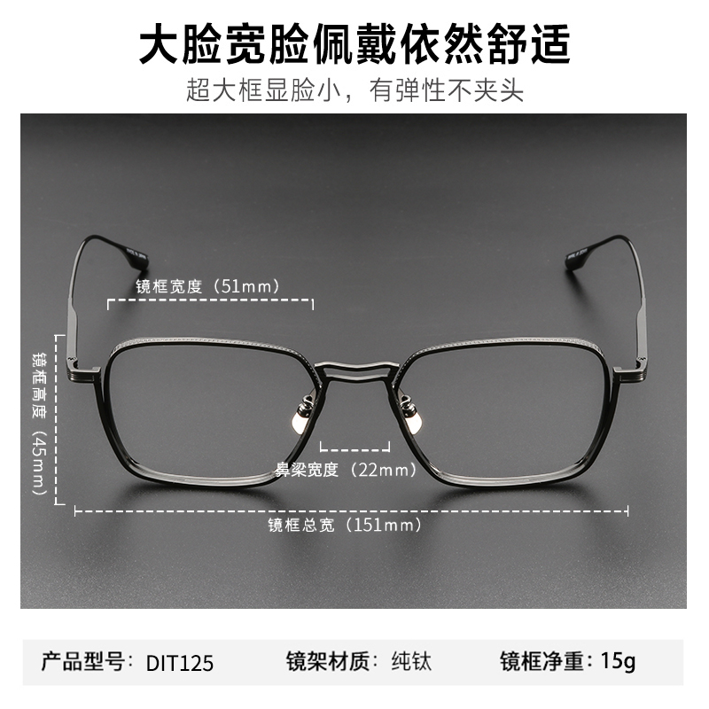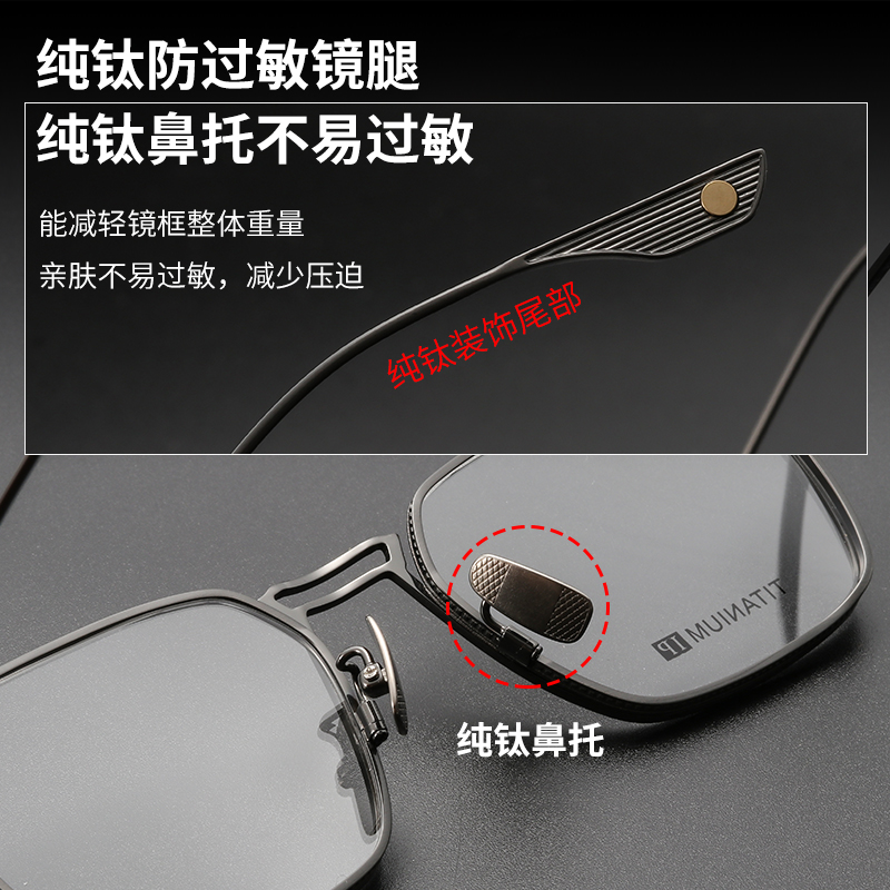 Ultra-large frame pure titanium designer glasses big face thin face small discoloration anti-blue light myopia glasses frame male ultra-light