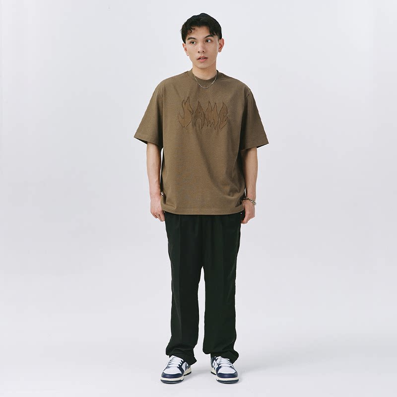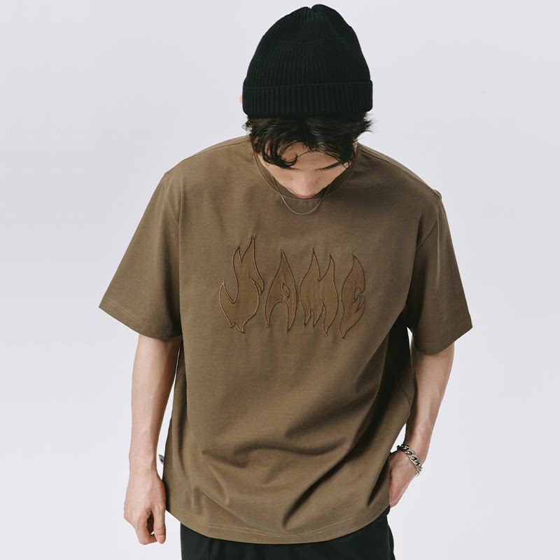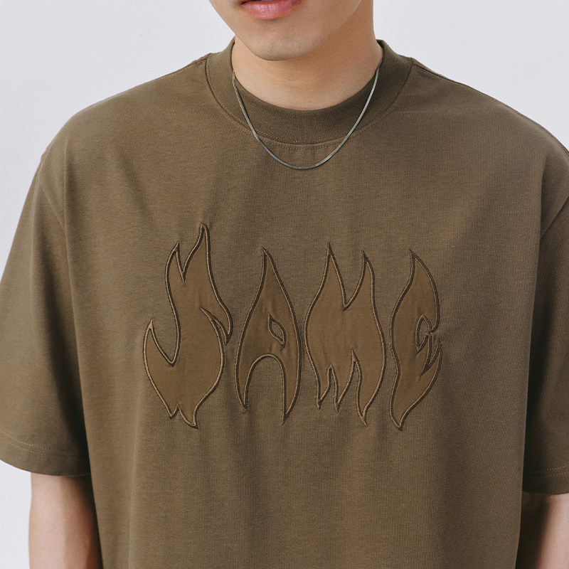 SAMESAME22SS Coffee flame embroidery American street loose T-shirt hip hop round collar knit short sleeve male and female