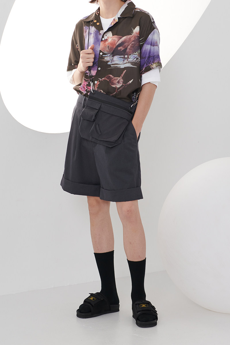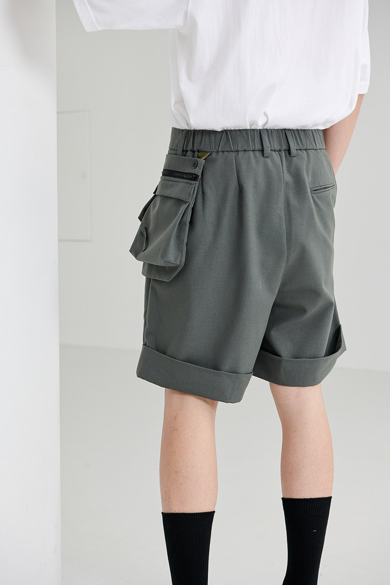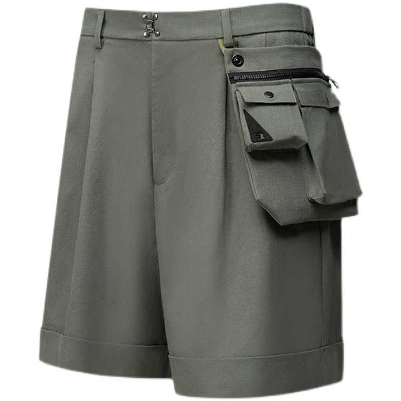 BEEKITE Detachable Pocket Suit Shorts Japanese Casual Outline Pocket Change Small Backpack Five Pants