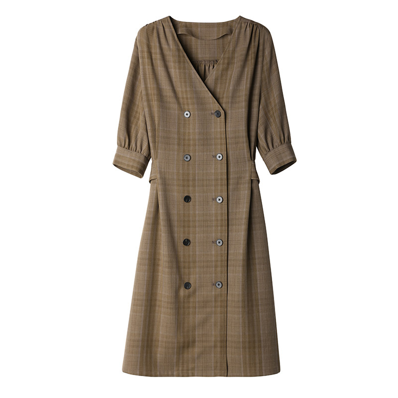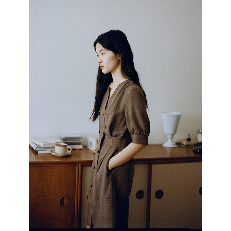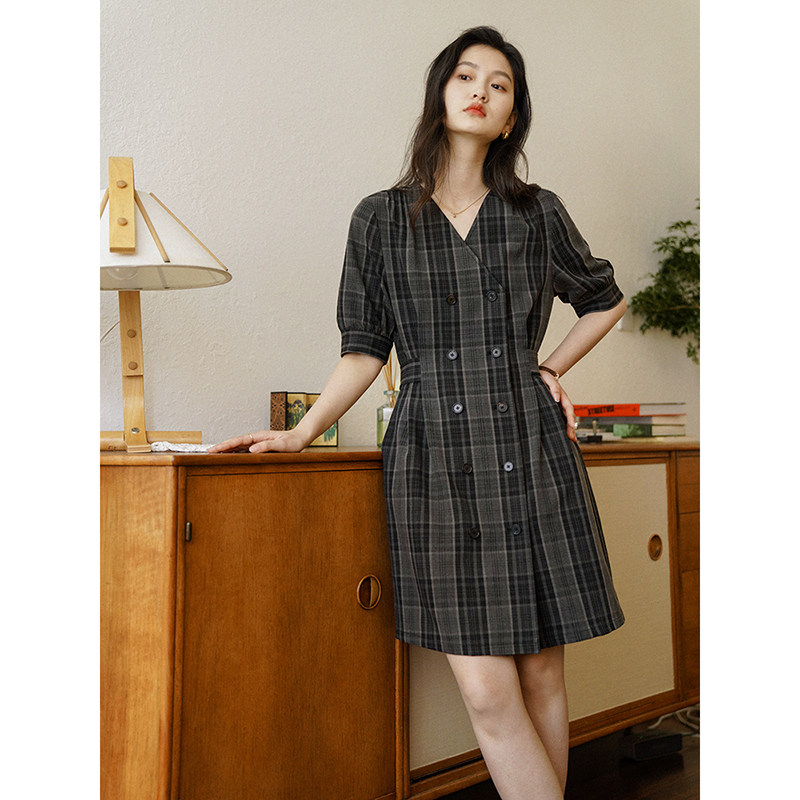 Eurocan Retro short sleeve V neckline plaid with small subsuit short skirt close-up Han version A character dress for the summer