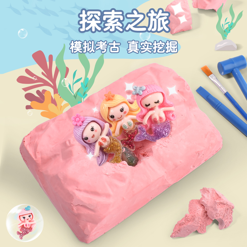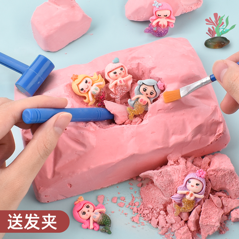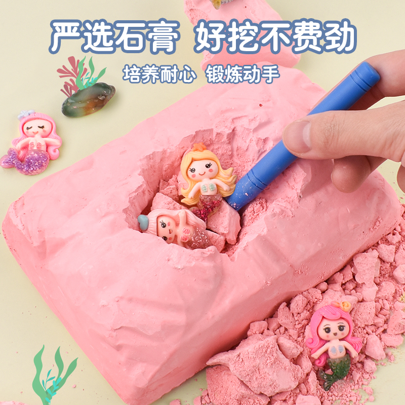 Archaeological excavation toy elf girl knocking colorful gemstones mining blind box dinosaur fossil children's treasure hunt plaster