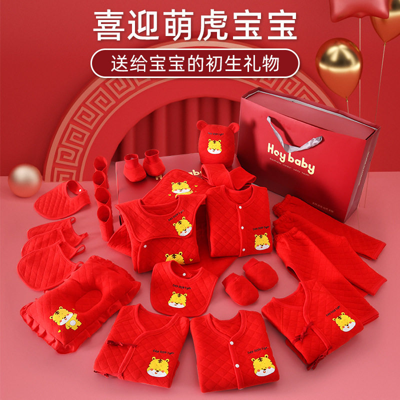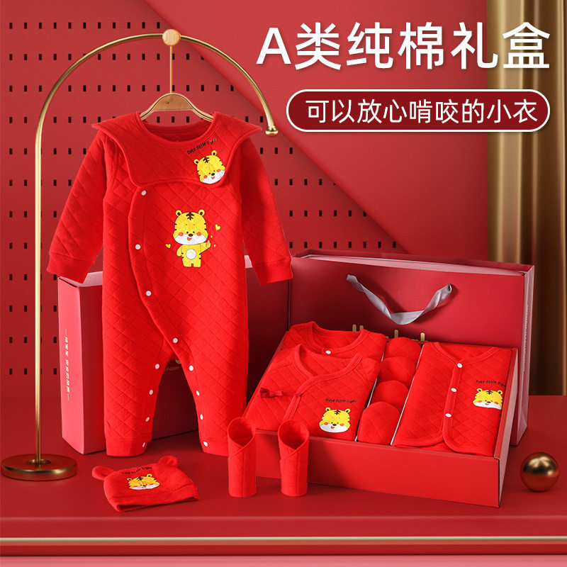 Big Red Tiger Year Baby Clothes Newborn Gift Boxes Suit Pure Cotton Beginner Men And Women Full Moon Gifts Gift