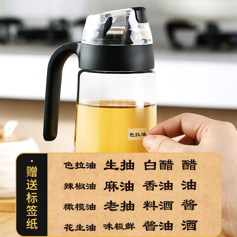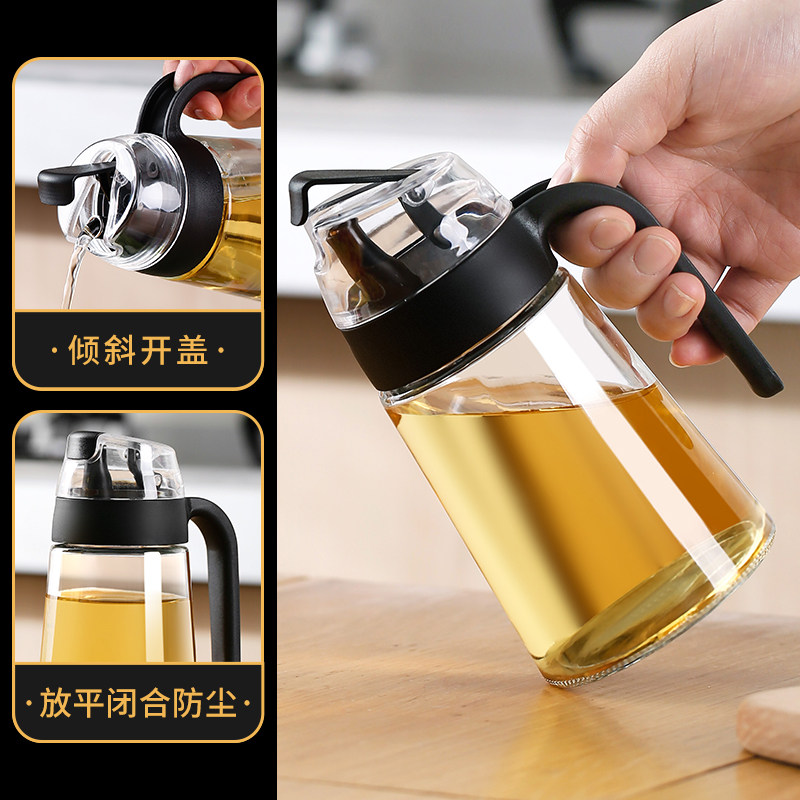 Special Sheng kitchen glass oil pot household automatic opening and closing oil bottle anti-leakage oil tank sesame oil soy sauce oil and vinegar tank pouring oil bottle