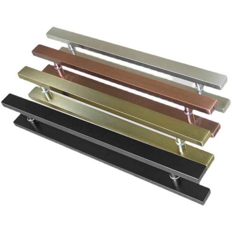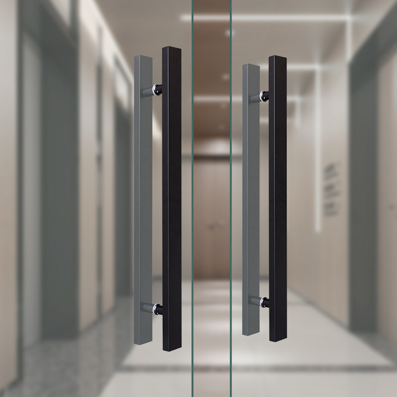Modern minimalist shower room glass door handle black bronze color stainless steel square pipe pair door sliding door wood door handle
