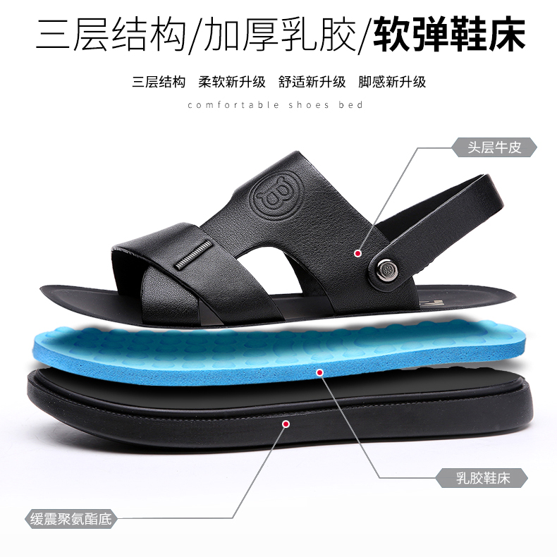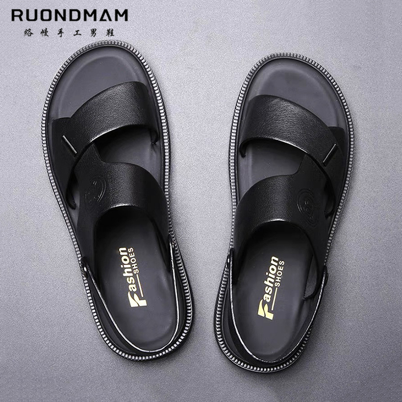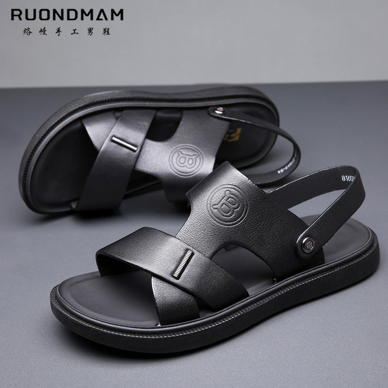 RUONDMAM high-end men's sandals new leather leather beach shoes soft bottom non-slip men's casual sandals