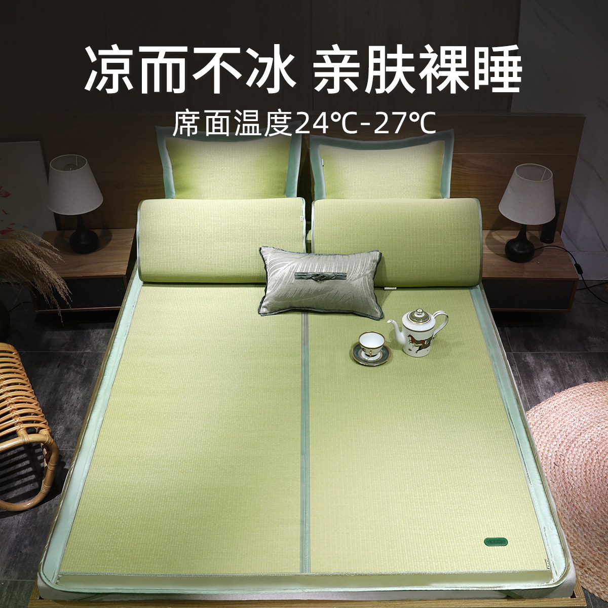 Natural sponge grass single mat (without pillows) natural sponge grass Three sets (with two pillows mat) Dormitory Mat Single Mat (without pillows) sponge Grass green wrapping side single mat (without pillowcase) sponge grass grey bag edge mat