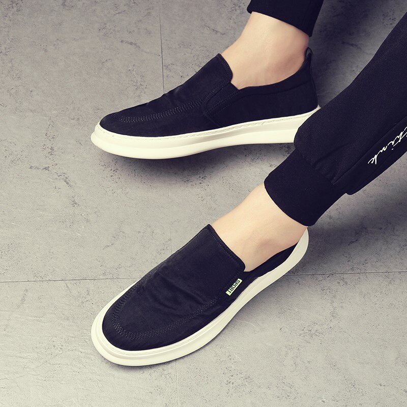 Black cloth shoes men's Korean version of the trend summer one pedal soft bottom casual lightweight breathable shoes men's thick-soled canvas shoes
