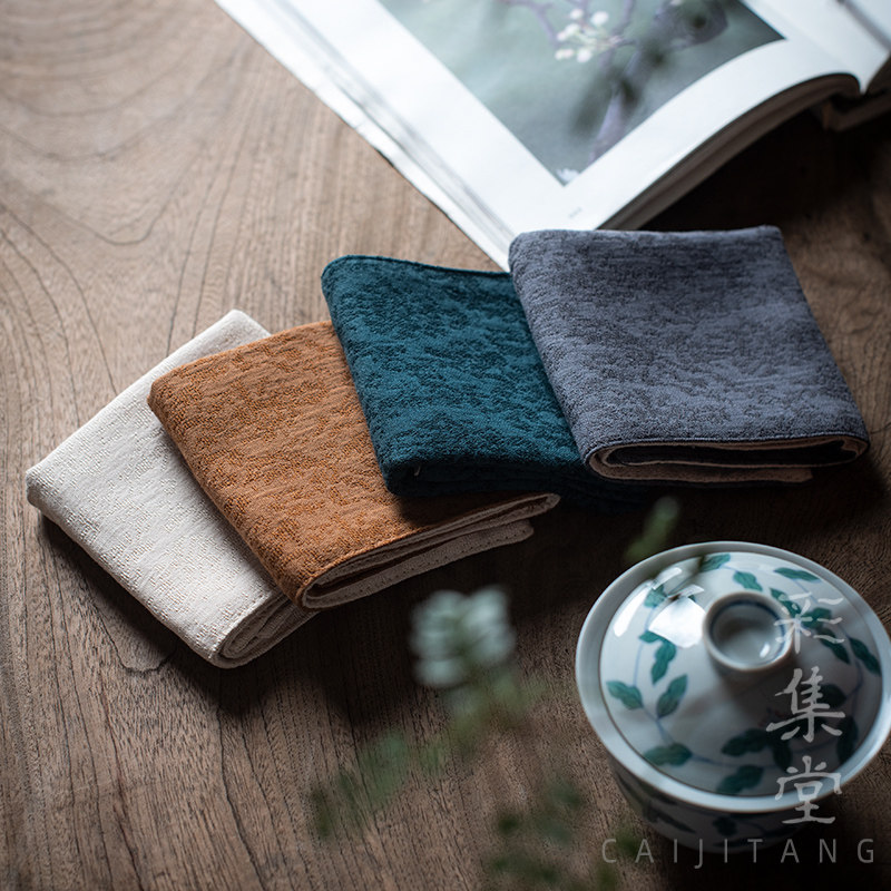 Colour Collection Hall Cotton Linen Jacquard colour tea towels Double sided absorbent square towels tea table cloth raising pot towels tea mat Tea track Zero fit-Taobao