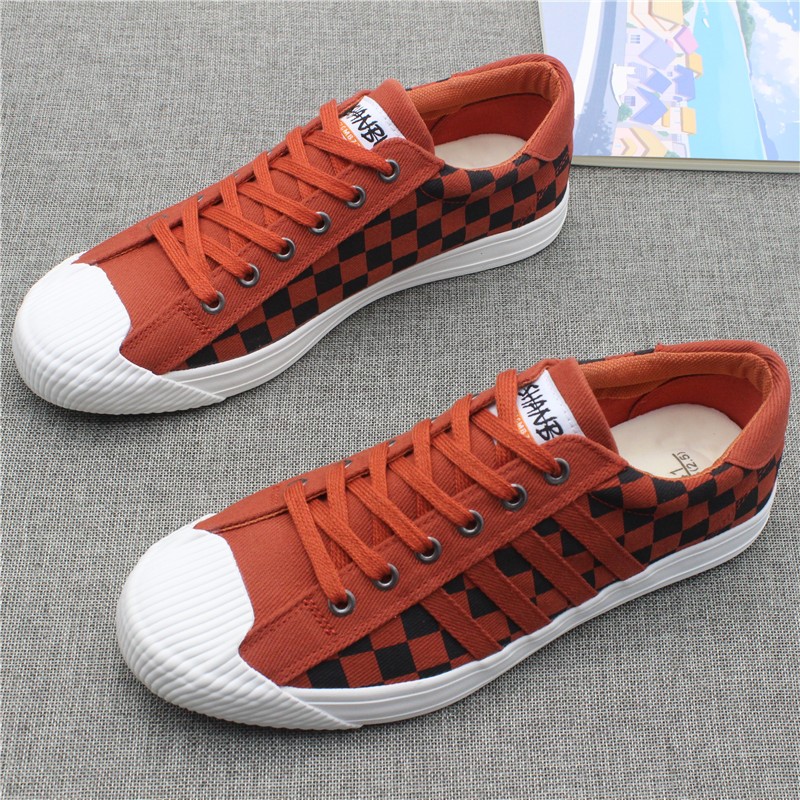 Summer canvas shoes men's trend all-match low-top black and white plaid shoes breathable deodorant cloth shoes soft bottom shell head men's shoes