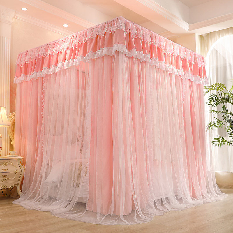 Floor Mosquito Net Home 2021 New Bedroom Princess Wind Palace Court Bracket Dust Resistant Top Canvas Belt Bed Blinds Shade