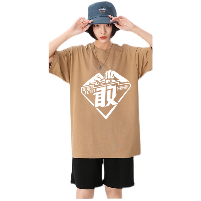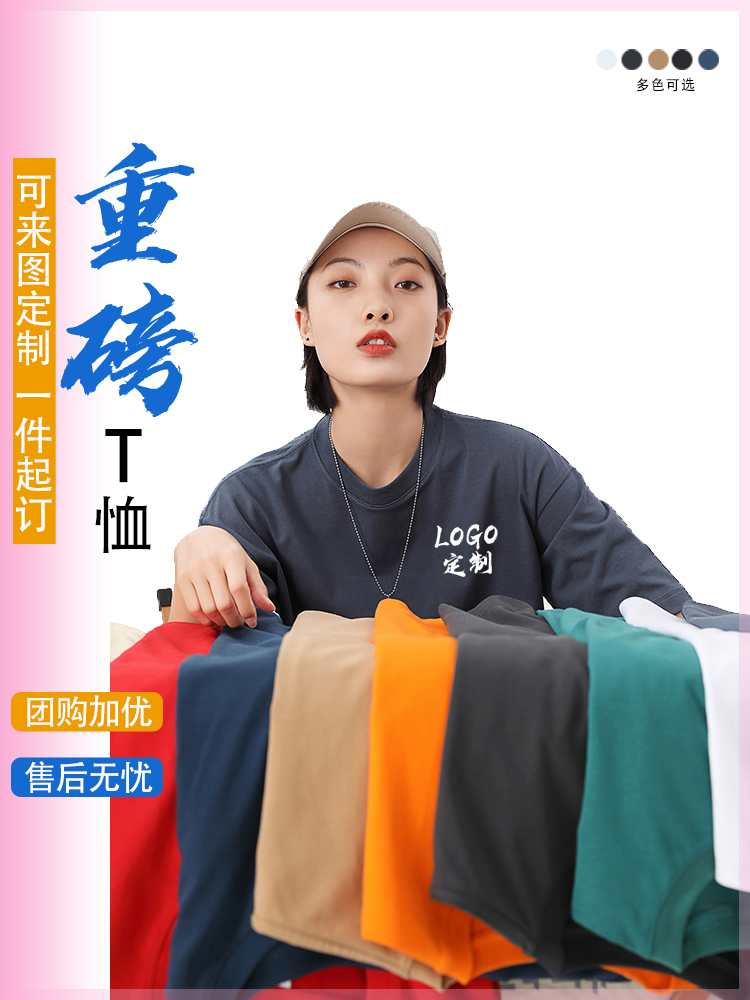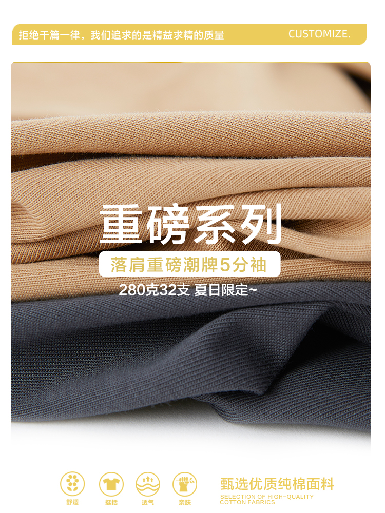 280g heavy high-end t-shirt double yarn pure cotton drop shoulders five-quarter sleeve work clothes work clothes for men and women with the same style printed logo