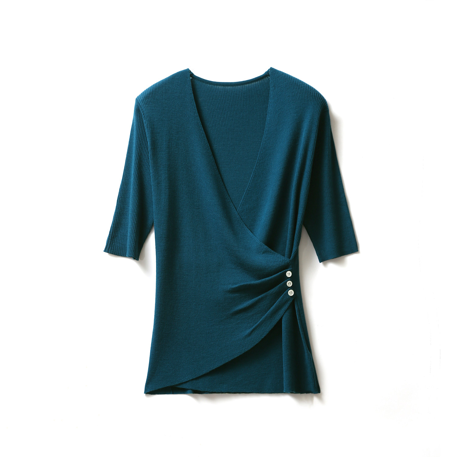 (ZZ0224708)Strong player 120's16 needle Yangtze yarn wrap-type mid-sleeve knitted sweater