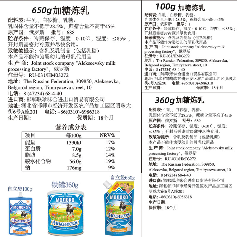 Russian imported food added sugar condensed milk pure natural condensed milk for baked products bread dairy ice cream