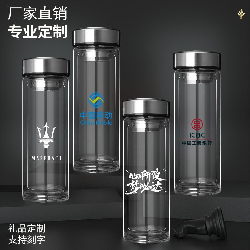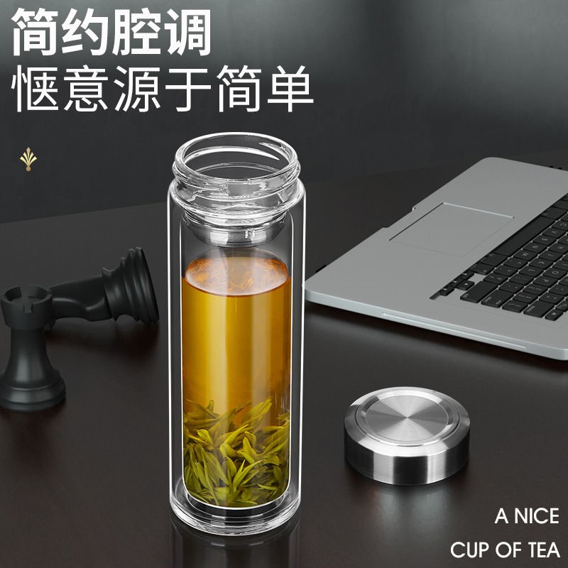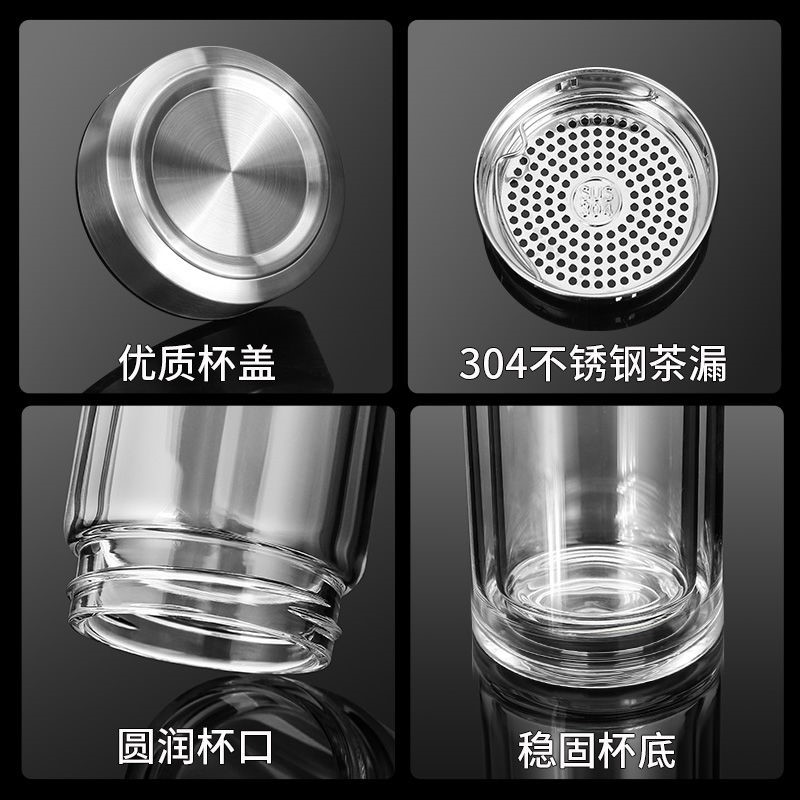Double-layer glass men's and women's tea cup thickened office portable explosion-proof with lid insulation large-capacity custom water cup - Taobao