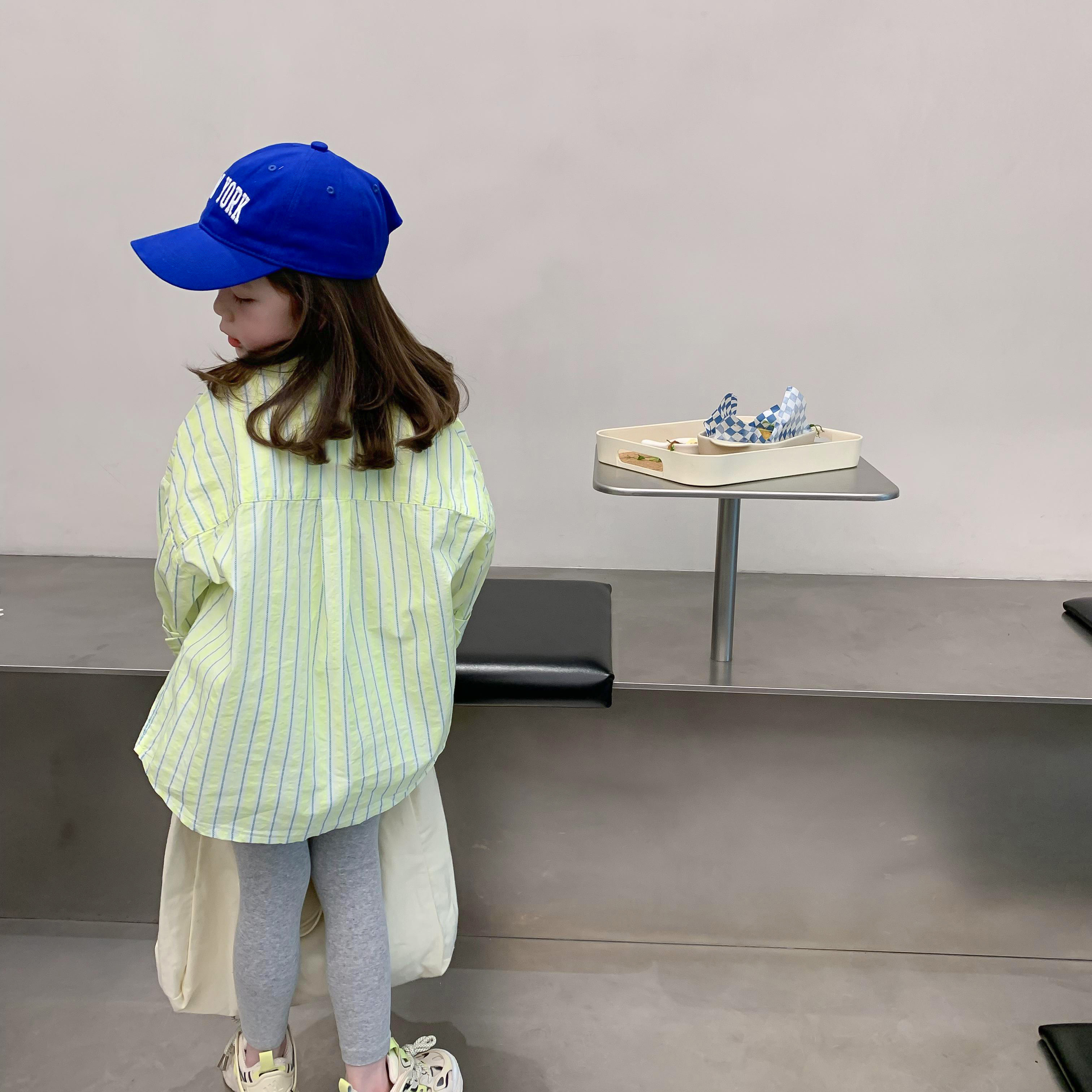 Boudin Haru 2022 Spring Autumn New Children Foreign Pie Spring Shirt Girl Spring Striped Jacket Spring Dress Blouse