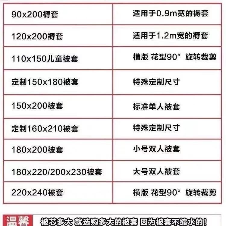 110x150cm quilt 150x200cm quilt 180x200cm 180x200cm quilt 180x220cm 180x220cm quilt cover 200x230cm quilt