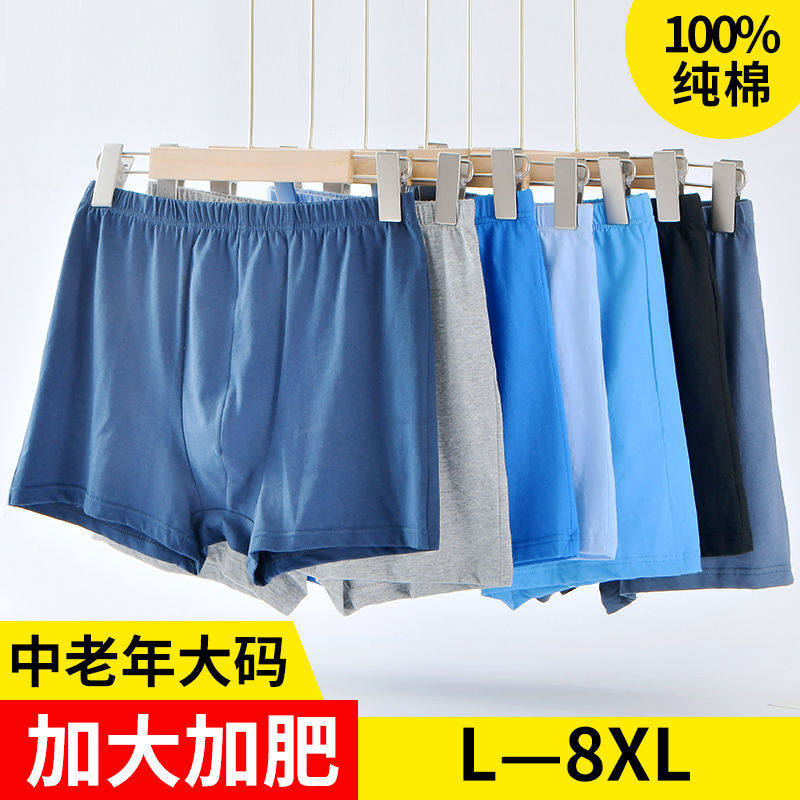 Men's underwear pure cotton flat angle breathable suction sweats Old-aged full cotton large size Large size Fat Guy Loose Dad Four-corner Short Pants