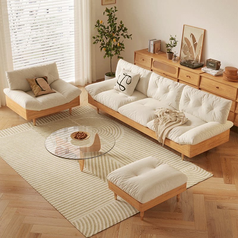 Japanese-style solid wood cloud sofa living room small apartment modern minimalist fabric sofa combination Nordic furniture designer