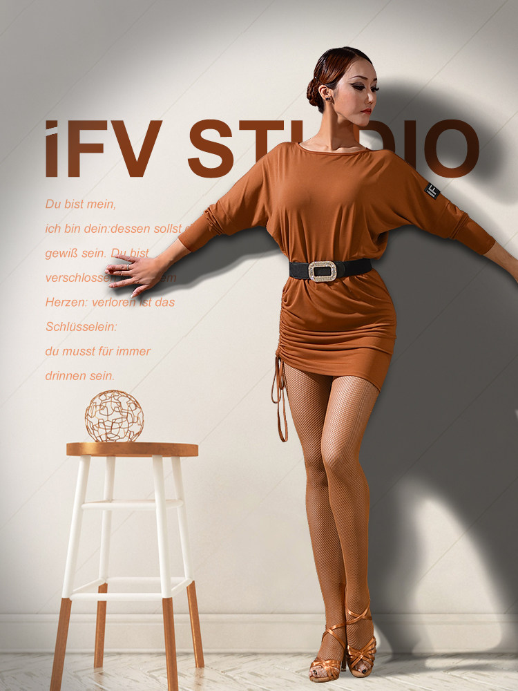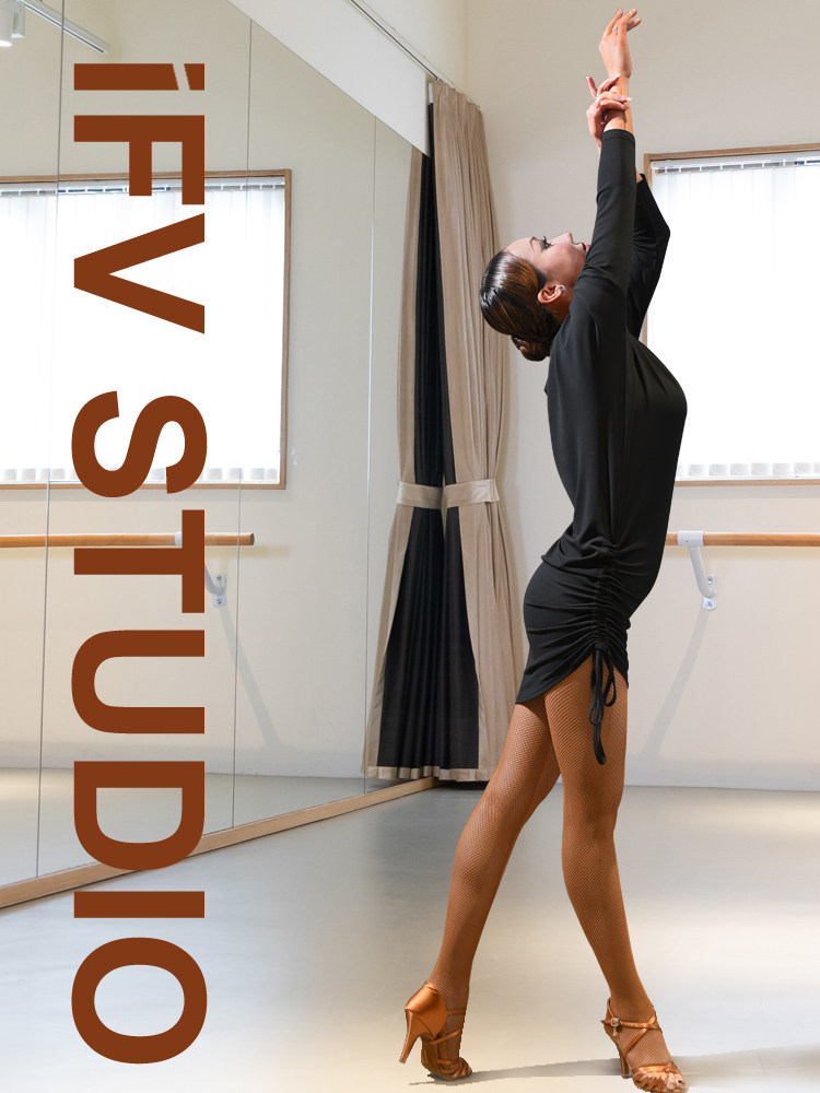IFV Latin dance suit long-sleeved skirt black loose bat sleeve exercise suit drawstring adjustable skirt length adult female one size fits all