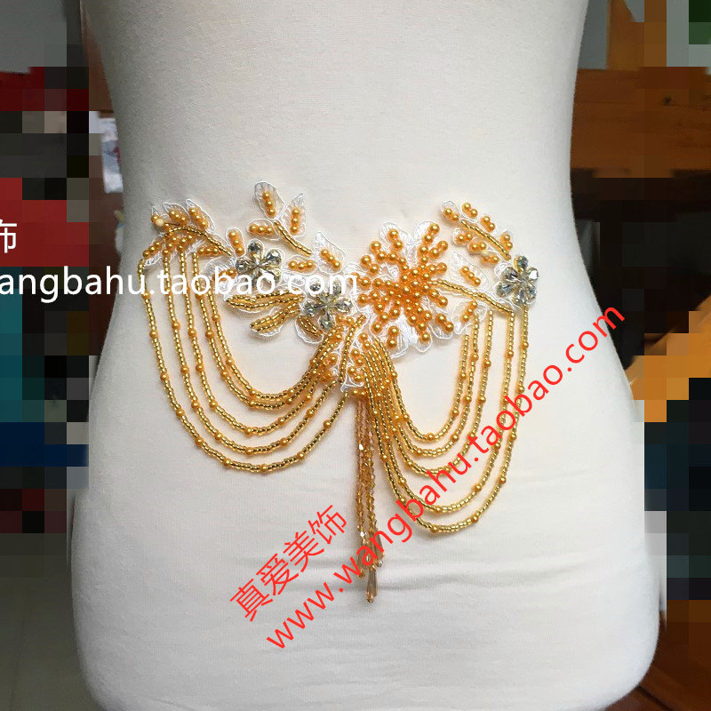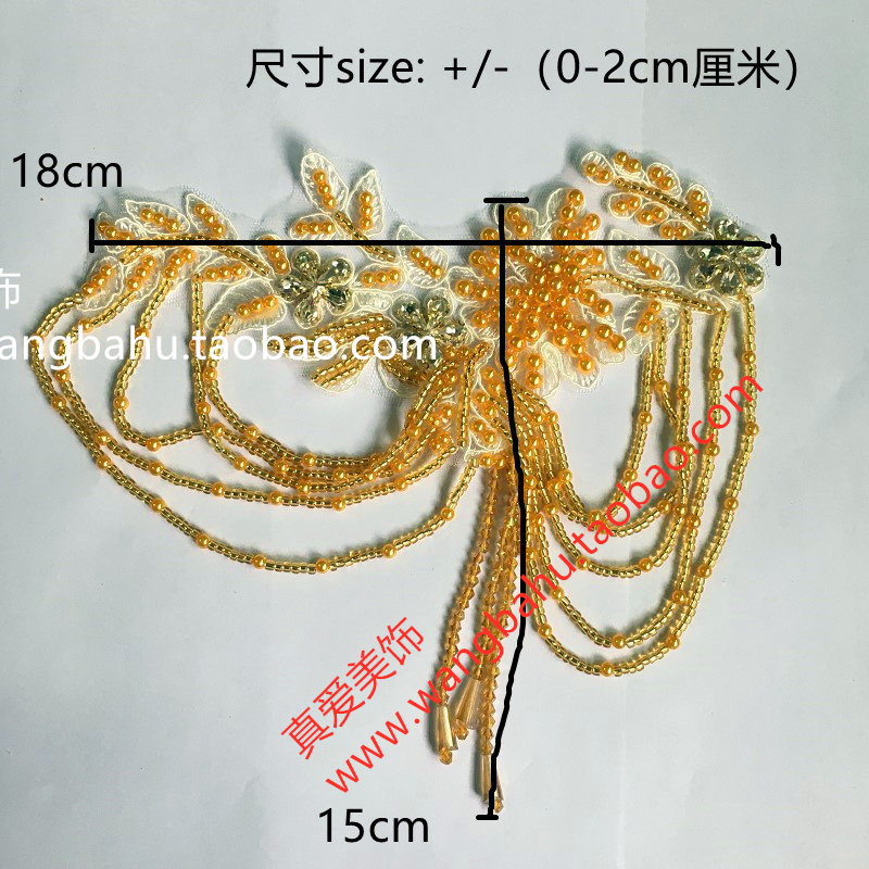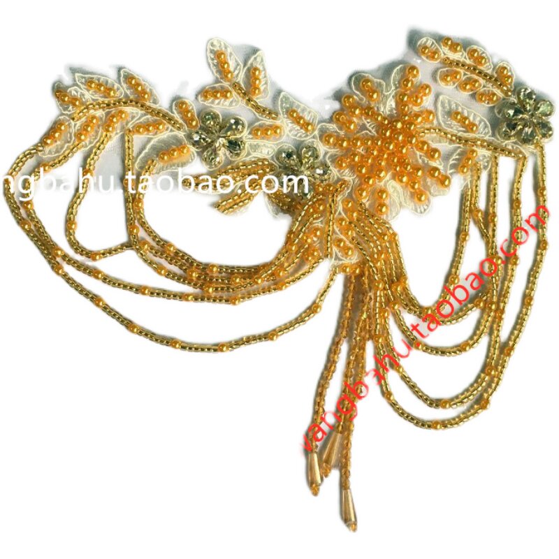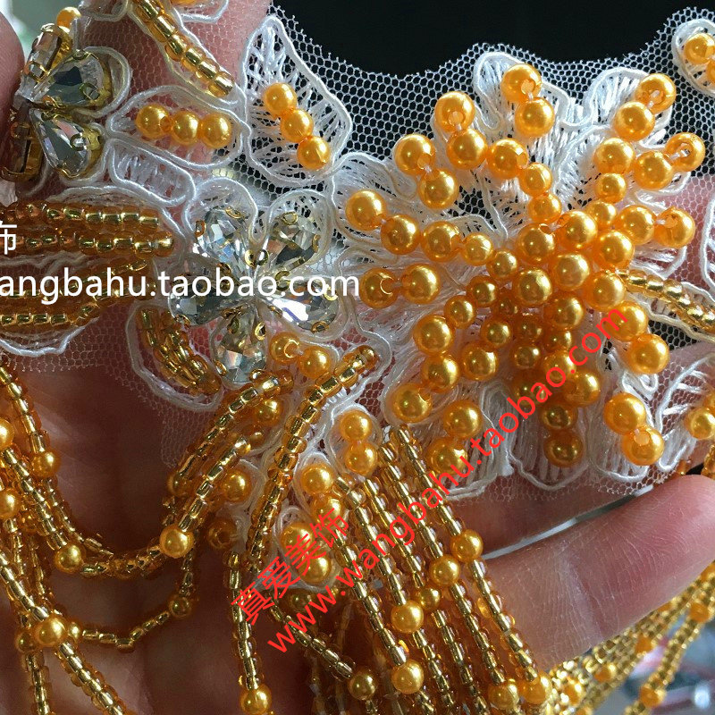 Gold imitation pearl rice bead heavy industry beaded tassel flower DIY costume headdress material sweater coat clothing drill