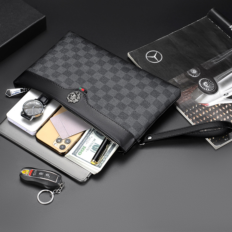 ChuongKaiye men's hand held bag business genuine leather handbag Tide Card Large Capacity Hand Grip Envelope Hand Wallet