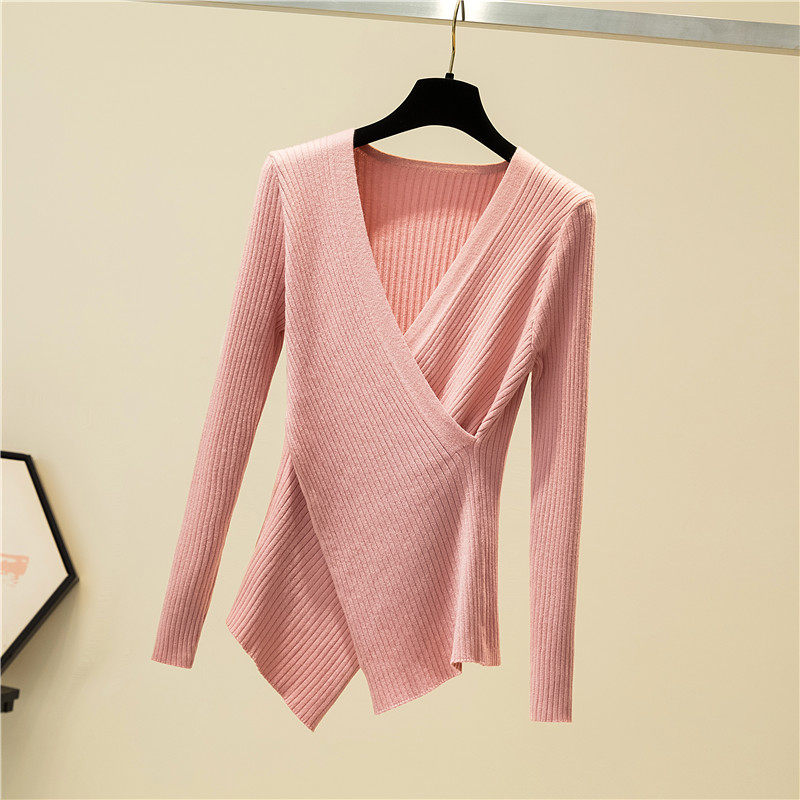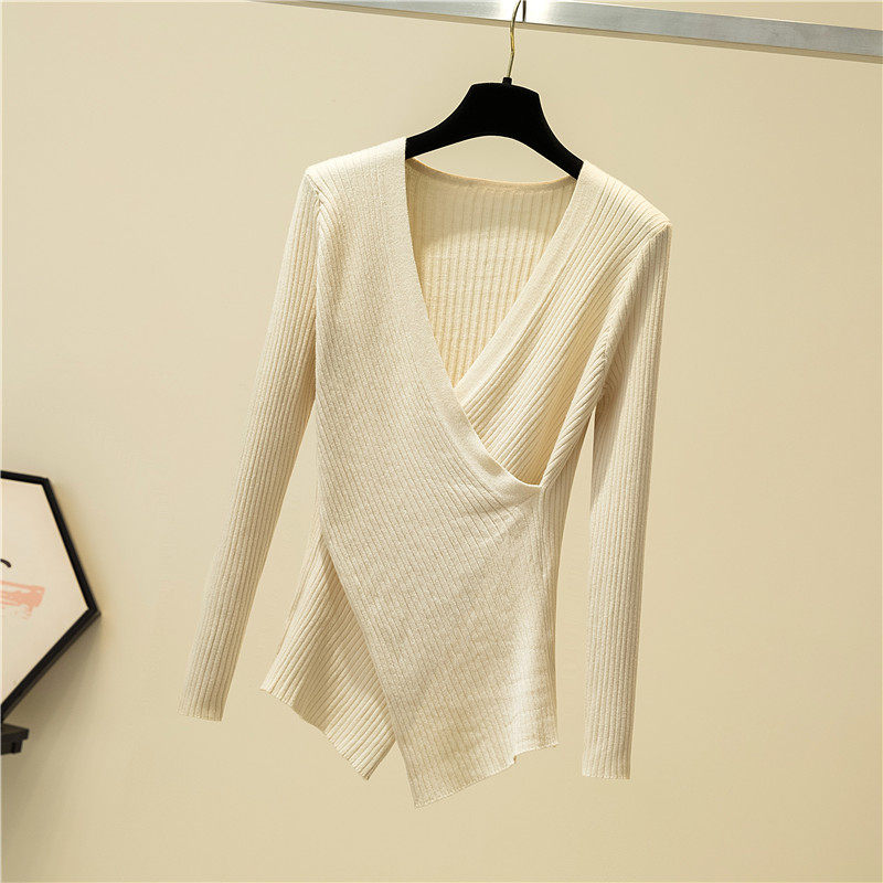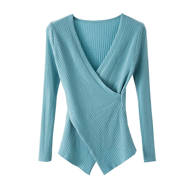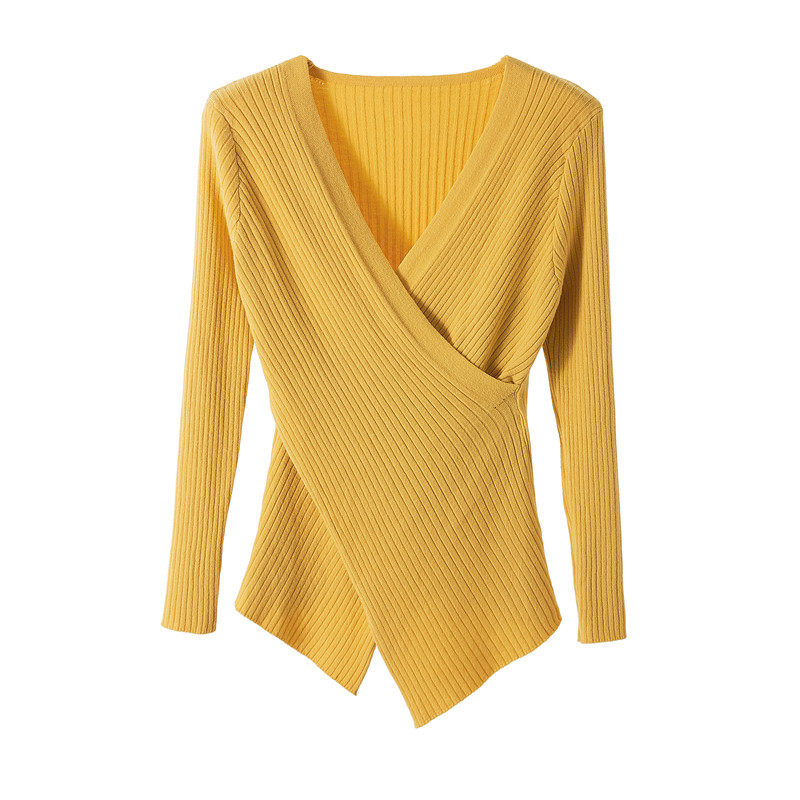 2022 new irregular collar clothes long sleeves Body Knitted Sweater Jersey Undershirt Woman Autumn Winter Foreign Pie