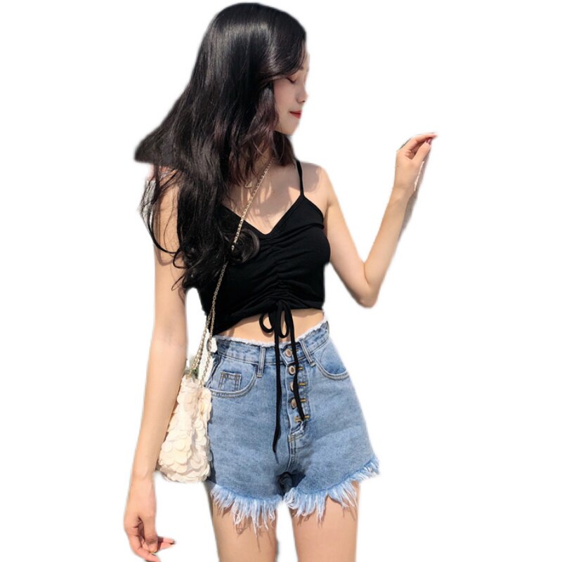 Spring and summer Korean version of small harnesses outside wearing overfire sweetness and underfloor hitchhiking design sensation vest blouses female damp