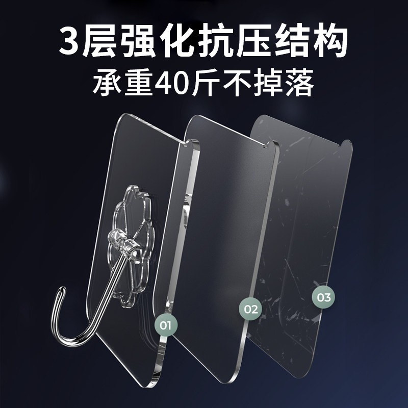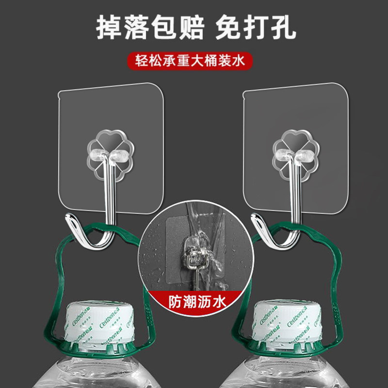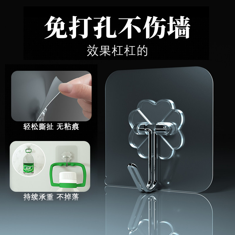 Powerful double-sided adhesive high viscosity wall special hanger bathroom Kitchen Wall Suction-bearing adhesive hook transparent and strong powerful waterproof and free to punch powerful no-dent stainless steel hanger