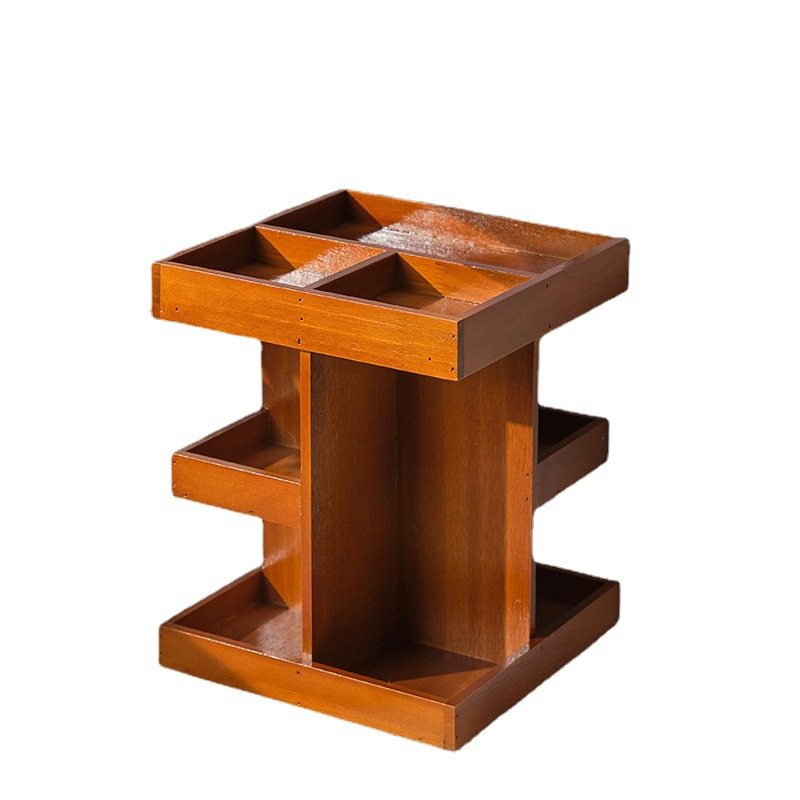 Solid wood retro tabletop rotary multilayer cosmetic storage case wooden multilayer perfume display shelf-Taobao