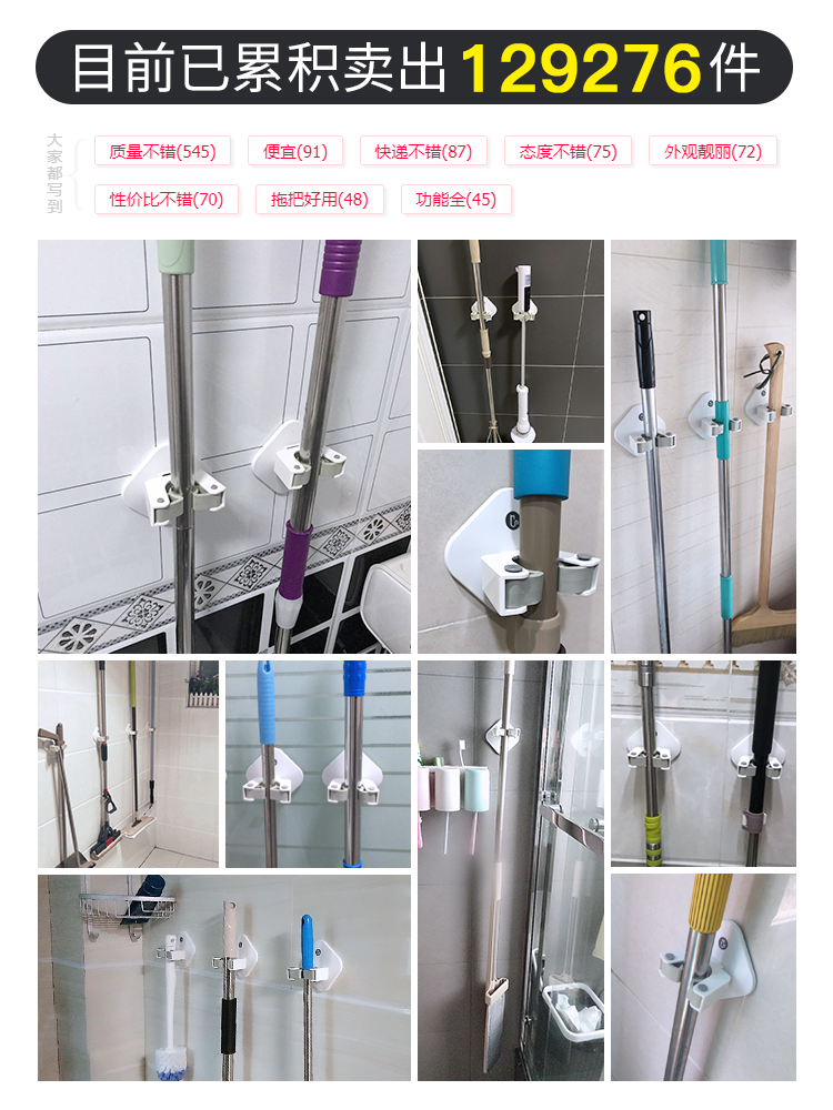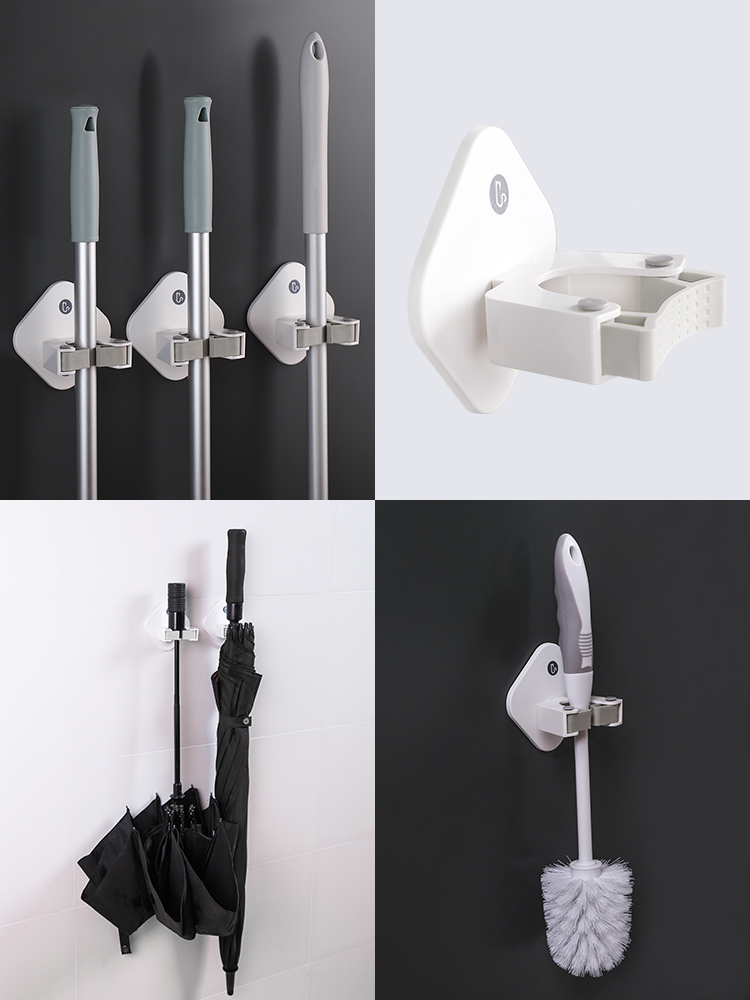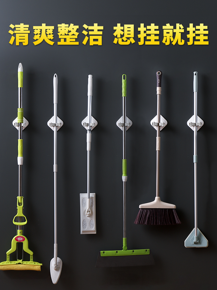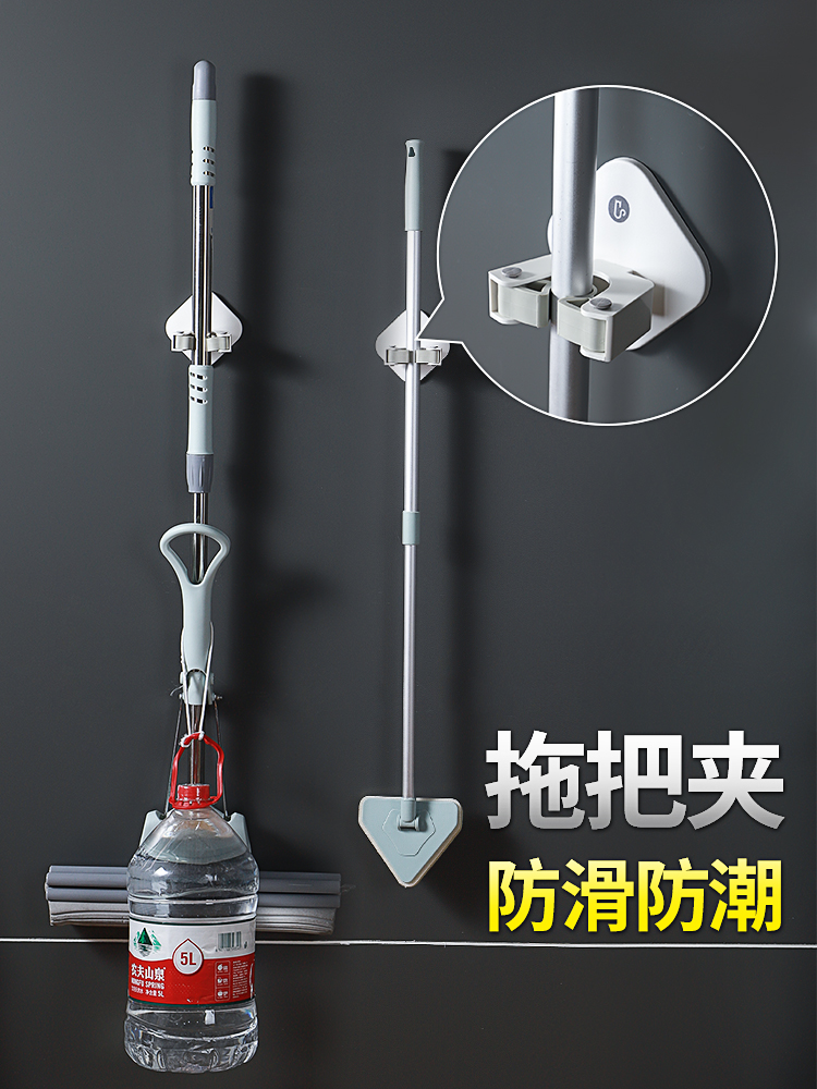 Mop clip hook mop bathroom household mop free punch wall hanging powder room storage shelf wall artifact